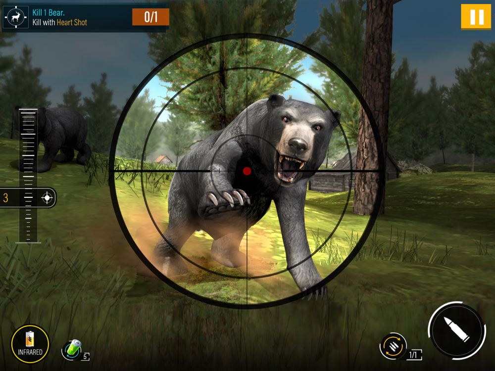 Shoot and kill the different animals with your sniper gun. But, be careful, if you miss your aim, you might just become the hunted, the prey!