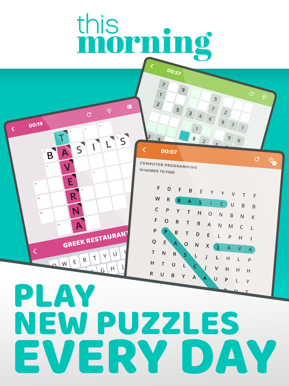 Puzzle Time from ITV’s This Morning is a free daily puzzle game app offering a wide range of Crossword, Wordsearch and Sudoku puzzles for novice and advanced players.