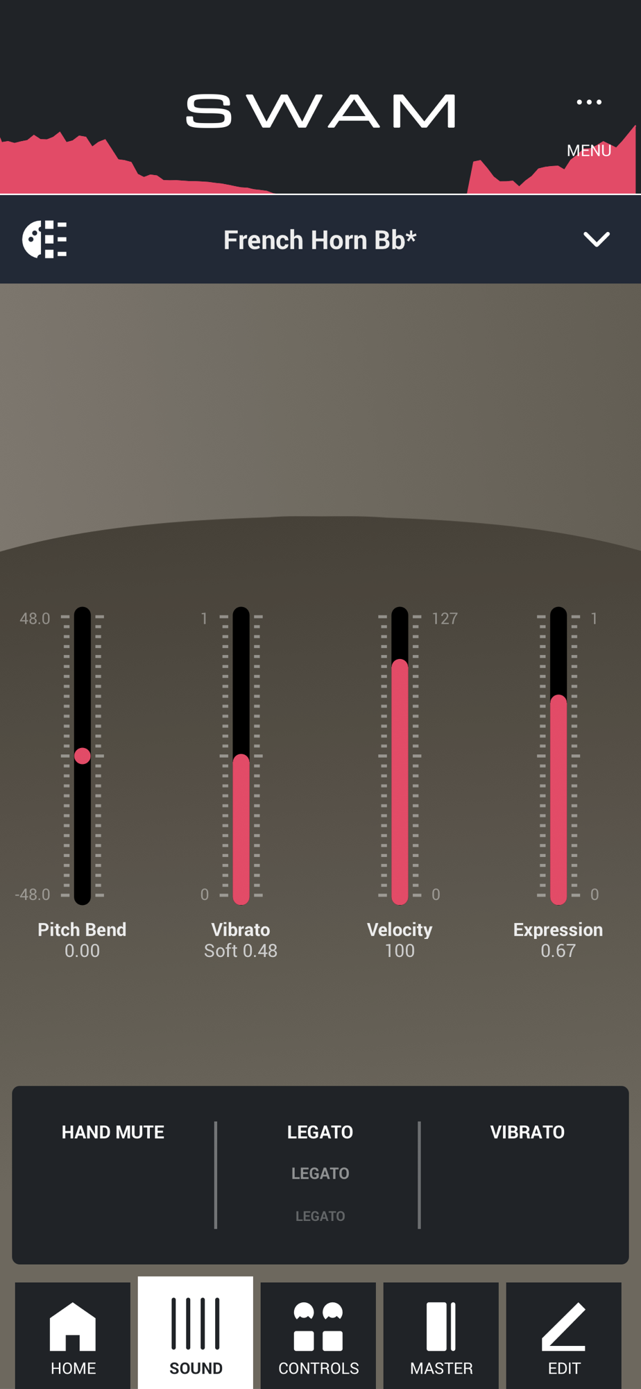 SWAM French Horn Bb for iOS can be used as a standalone instrument for playing in real-time, or as a plug-in for mobile music production. Play with your favorite external controller or directly from your iOS device through our intuitive interface, friendly for blind and visually impaired users.