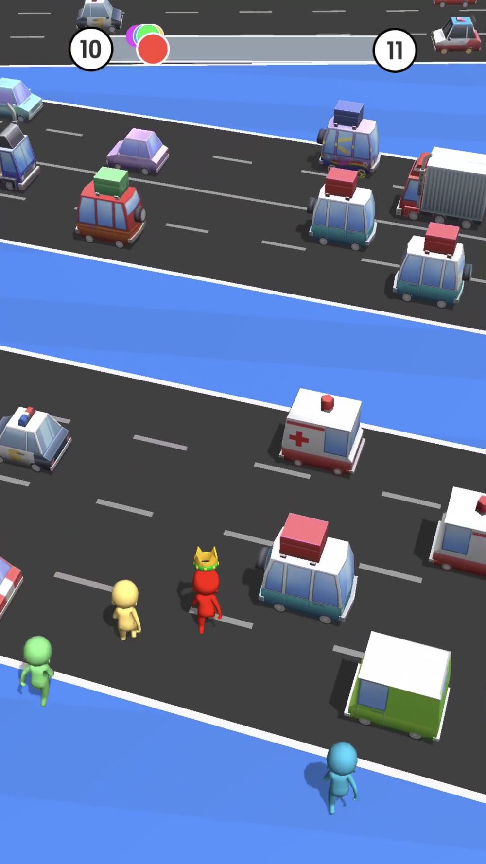Run against others to avoid cars, overcome obstacles, and cross the road to the finish!