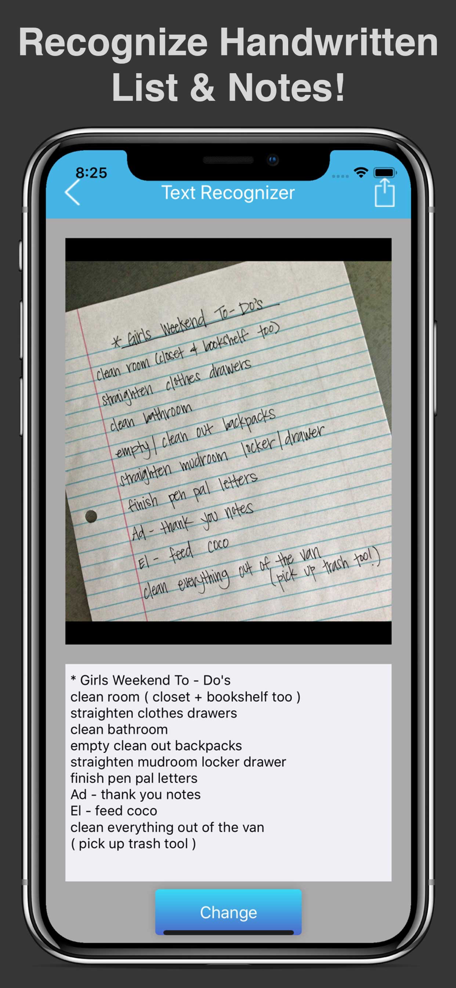 You can recognize handwritten text notes, list or any form of text from paper to editable text in your device in just one click.