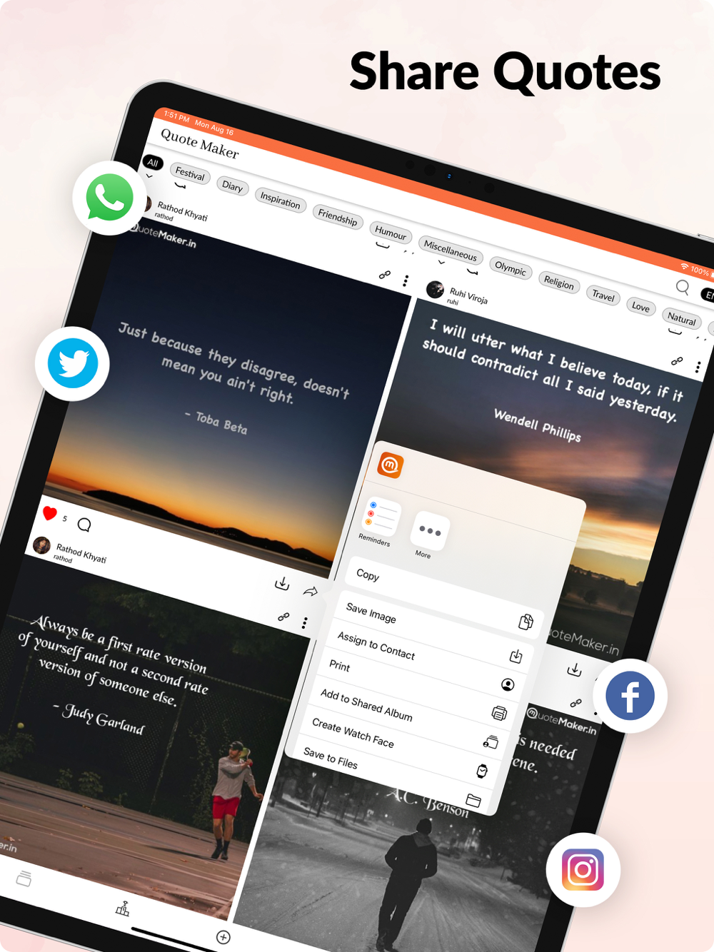 - Share your quotes with others