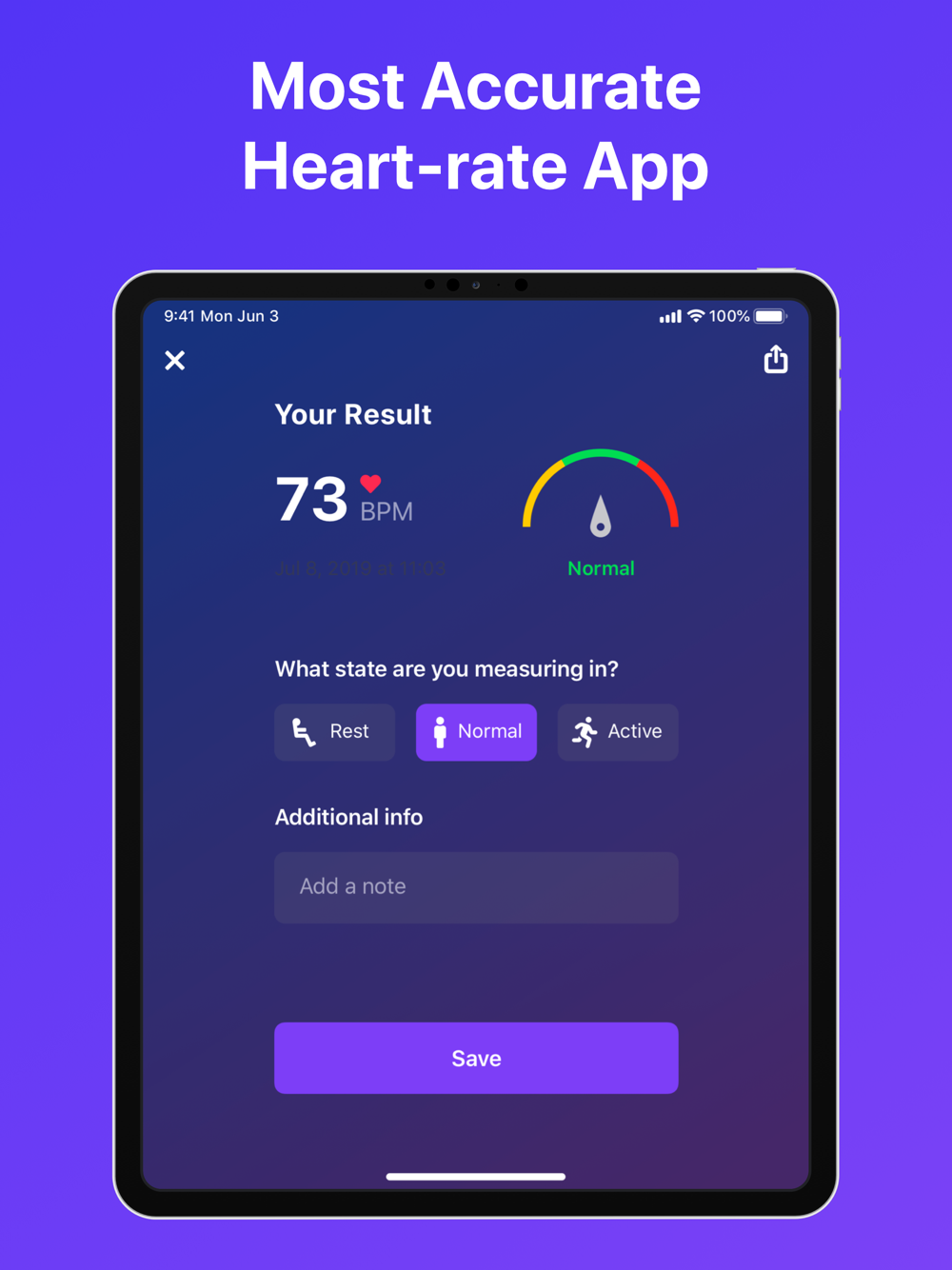 The most accurate and easy-to-use heart rate app for monitoring your health and fitness. Simply place your index finger over the camera of your iPhone, and within a few seconds, your pulse will be shown in real-time!