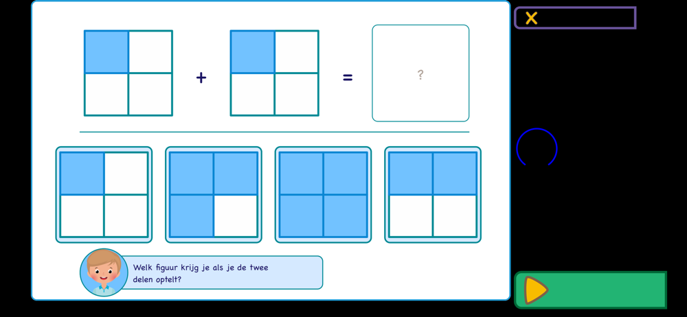You first learn to recognize a fraction, determine what the denominator and numerator represent in a fraction. As soon as you understand how to write down the fraction, you will learn to calculate with fractions up to one. This is done by the app by using funny figures that represent the fractions.