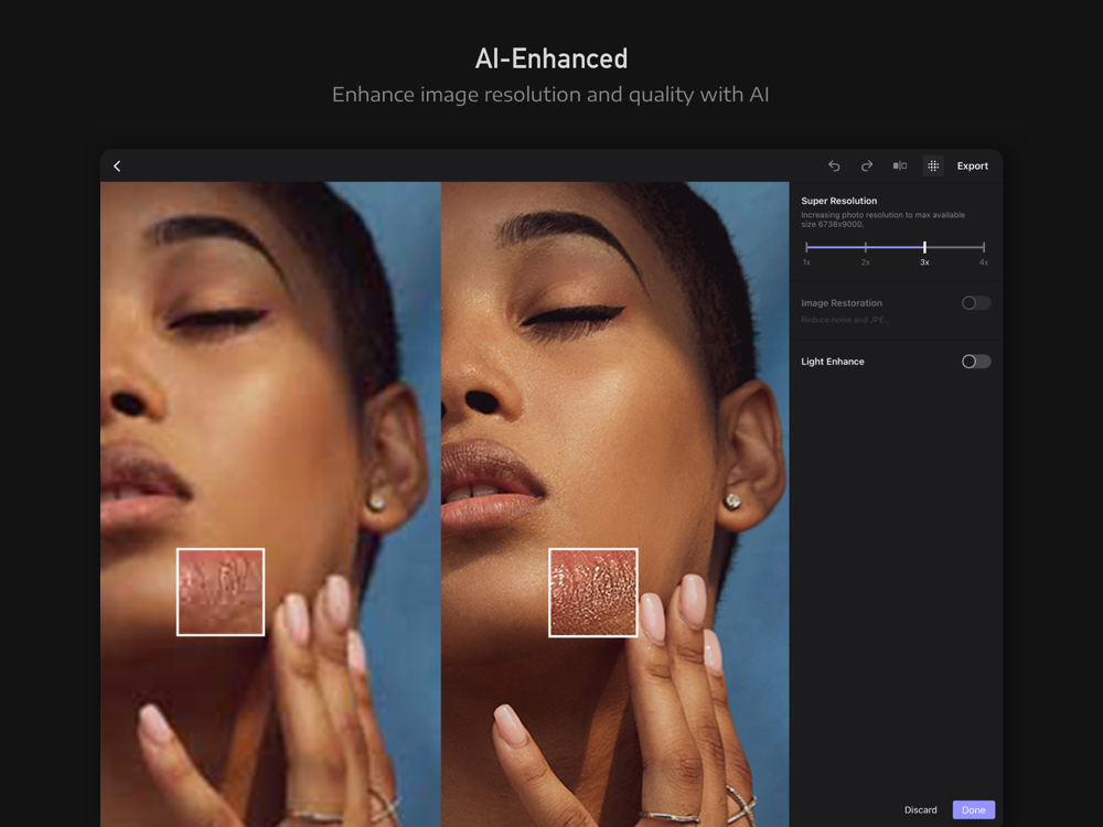 Super Resolution, Low light Enhancement, Photo Restoration, Repair Tools, and more.
