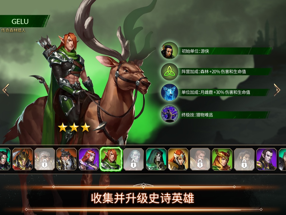 解锁传奇的《魔法门》无敌英雄!从臭名昭著的山德鲁到受祝福的凯瑟琳·铁拳,收集全部英雄来创造新颖独特的战术!升级您的英雄,解锁他们的被动和主动技能,帮助您的军队赢得战斗!