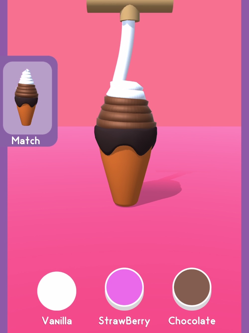 Hold the ice cream dispenser to pour your ice cream flavor and try to match the model. An extremely relaxing and satisfying DIY ice cream simulator. Run an ice cream shop and become a pro ice cream seller!