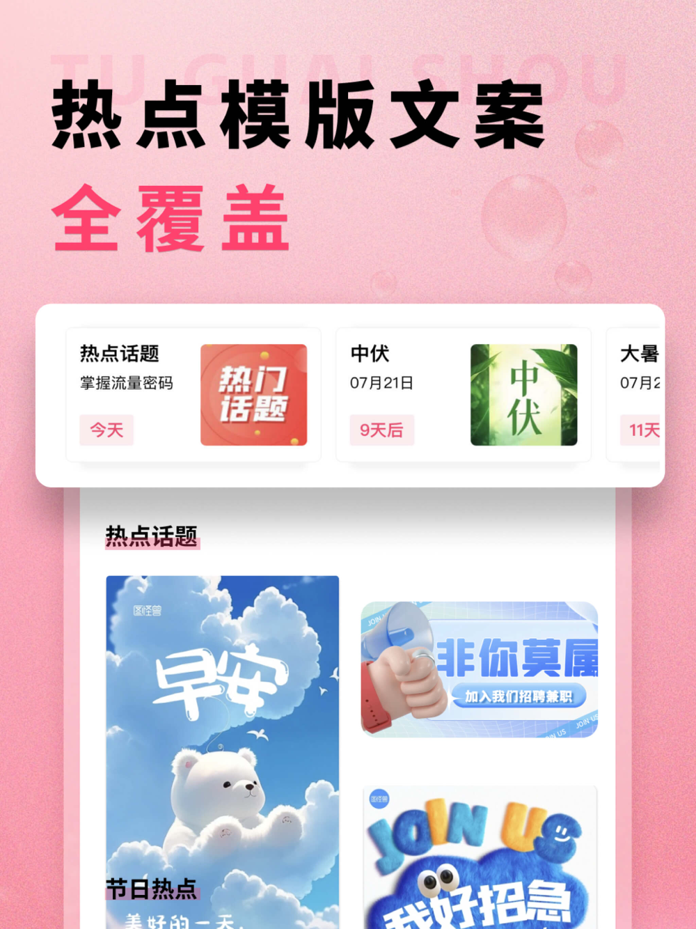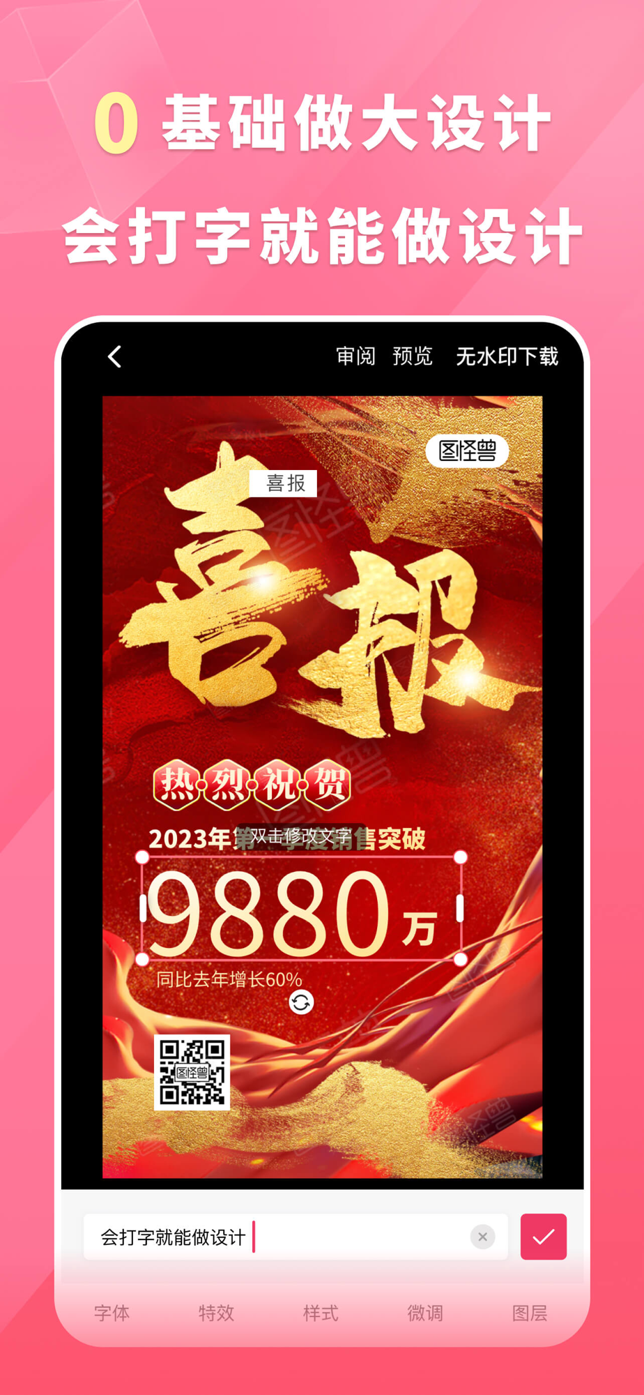 只需改字换图,3步7秒,手机一键出海报。无门槛做图做视频,从此设计不求人。