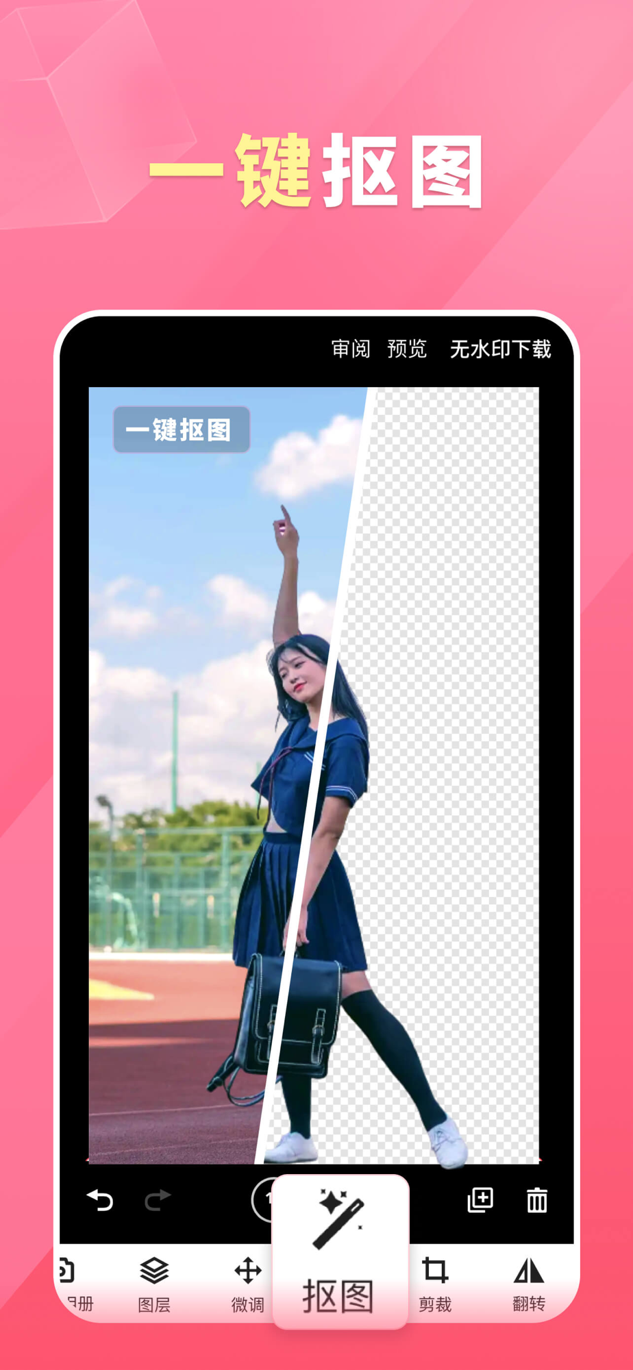 自由拼图、添加水印、抠图、GIF动图、视频制作等随心用,尽享一键智能的高效作图体验。