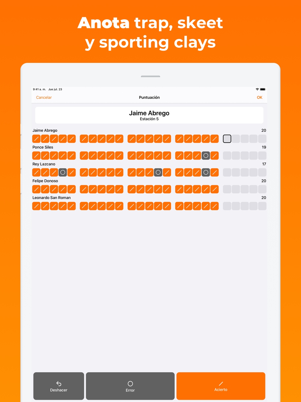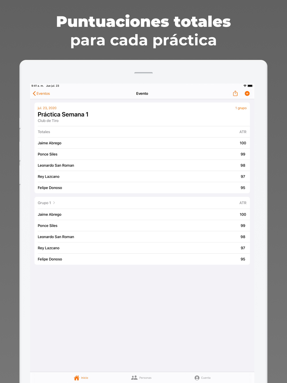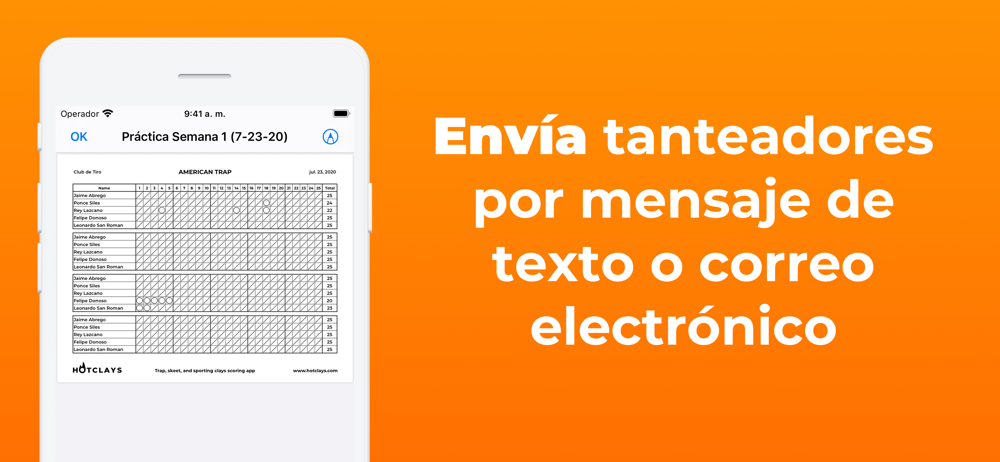 Simplemente toca acierto o error para anotar. Puntajes totales para cada práctica. Envía las hojas de puntuación por mensaje de texto o correo electrónico. Respalda tus tarjetas de puntuación gratis y sincronízalos entre dispositivos para anotar varios grupos a la vez.
