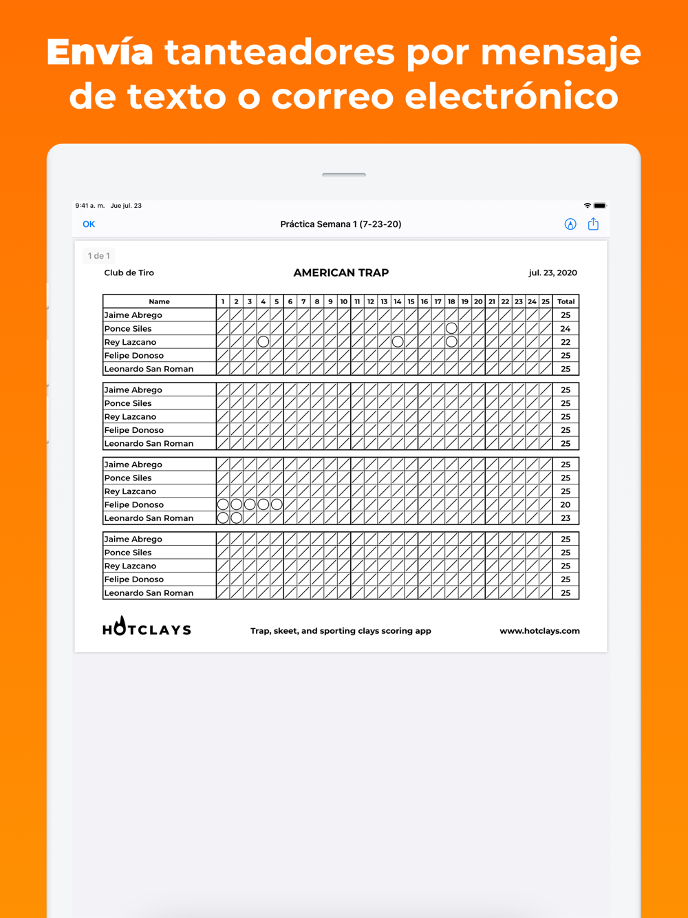 HotClays es perfecto para entrenar. Las puntuaciones de cada evento se agrupan en una sola página, lo que facilita subir puntuaciones semanales a tu liga.