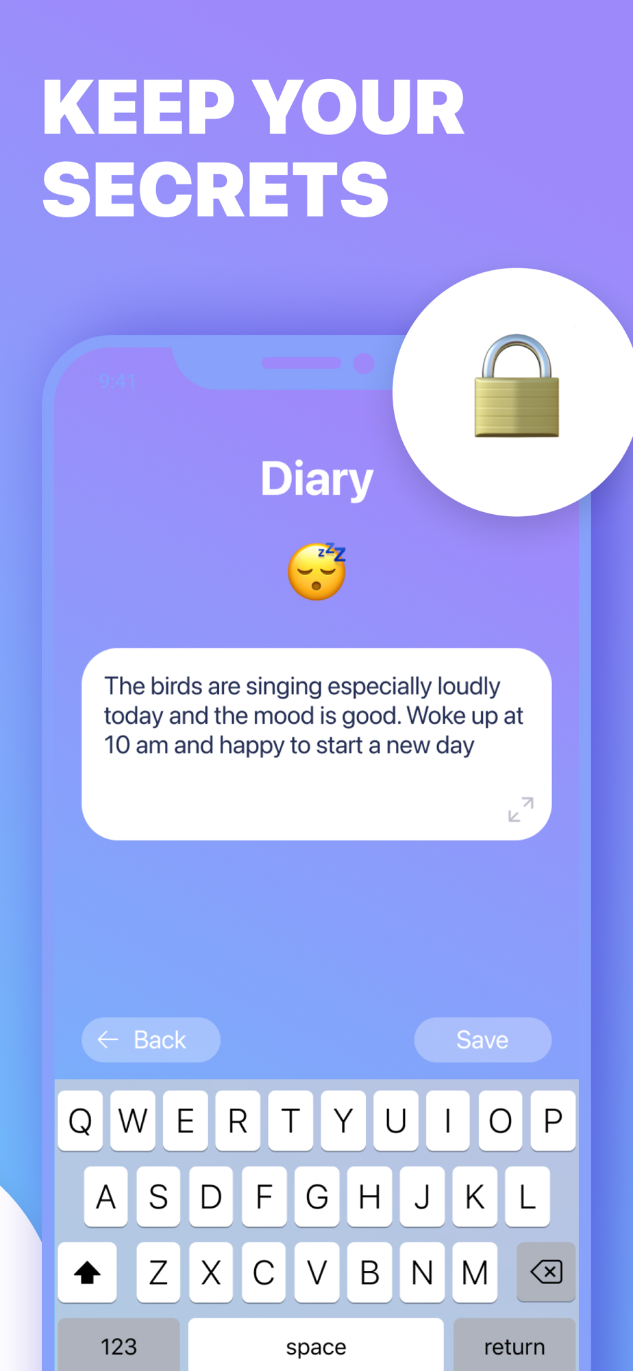 Save your data to Apple Health or get your fitness and health data from Apple Health. See the beautiful graphs and stats. Compare your sleep or steps with your mood changes.