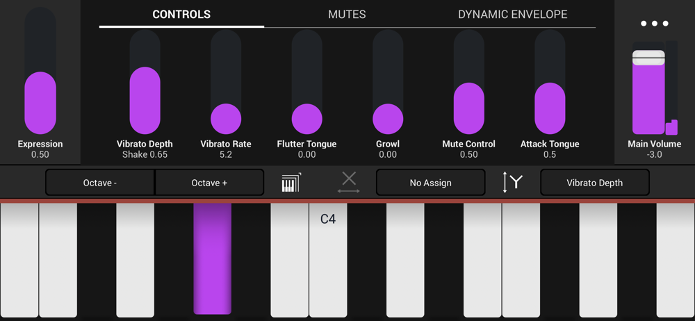 - Adjust every aspect of the instrument’s sound (timbre, vibrato, amount of air, etc.) through an easy-to-use control panel