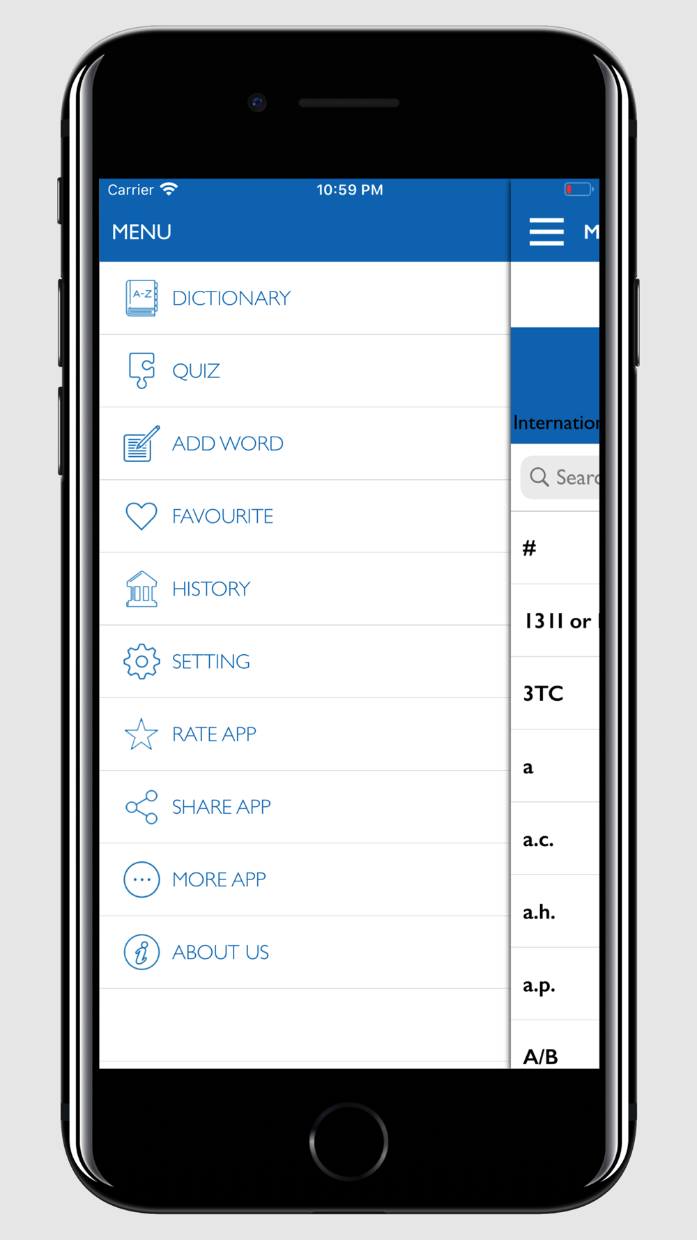 This application provides a variety of vocabulary and terms in Medical Abbreviations.If you have trouble finding definition or meaning fo a term in the field of Medical Abbreviations, you can try this awesome app.There are tens of thousands of Medical Abbreviations terms and words with clear explanation