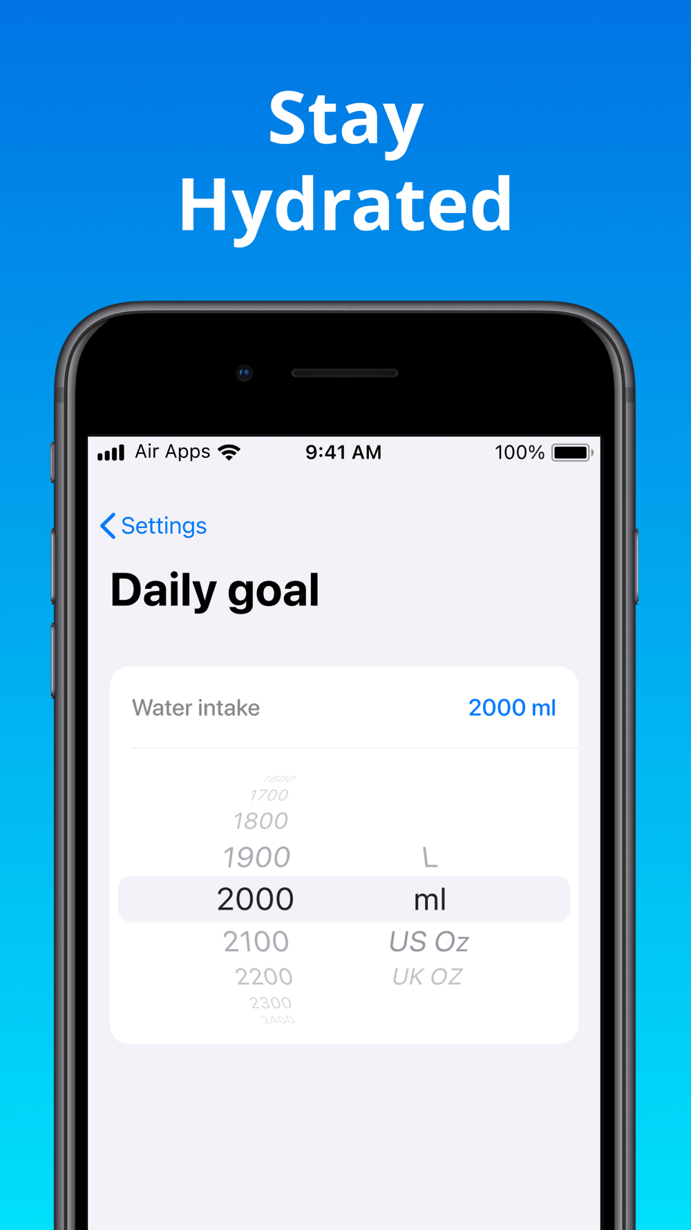 H2O will help you increase your energy level and improve your performance by motivating you to build a healthy water drinking habit.