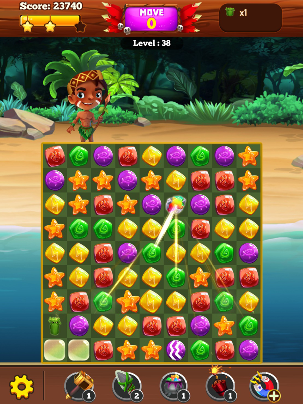 Match lightning, blast, and jewels for bigger bonuses and combos. With easy to use controls, fun and friendly graphics, and many levels to play, this game is fun for the whole family! If you like any other match 3 style game, you will love Jewels Temple. Try to get highest score at each level to digging to mania treasure.