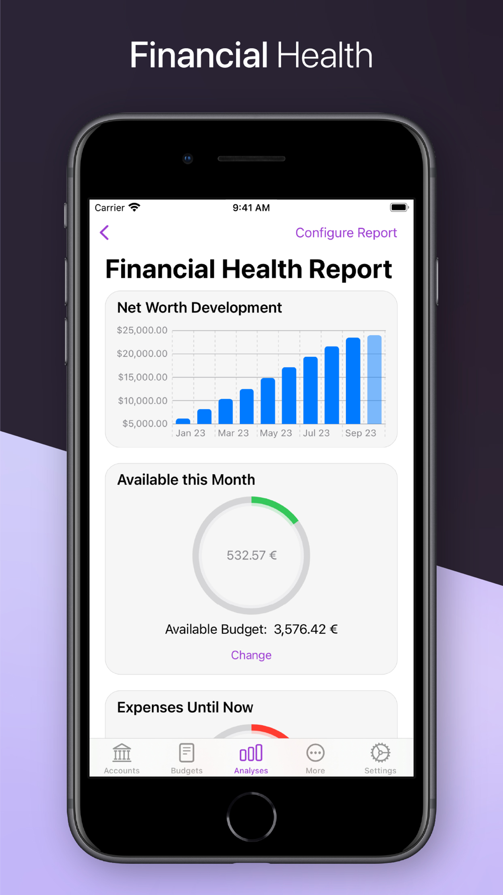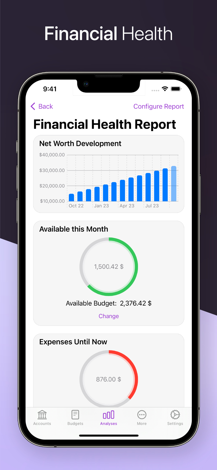 • New: Financial Health Report - Your financial situation at a glance - See how much money is left - Highlights exceptional amounts, such as unusually high income and expenses. Optionally spread these over a period (for example, splitting annual insurance into monthly fractions), or hide them. - Display expenditure models to review your financial goals - Compare your financial situation directly with other time periods - Identify significant changes within your categories• New: Presets for Split transactions: Create configurable presets to quickly add splits for common use cases (like taxes, splitting expenses with your partner…)• New: Charts for categories• Overall performance improvements: Many areas of the app react faster and snappier• Add stock prices manually, if required• Continue where you left: iFinance automatically takes you to the last section you worked in• And so much more...