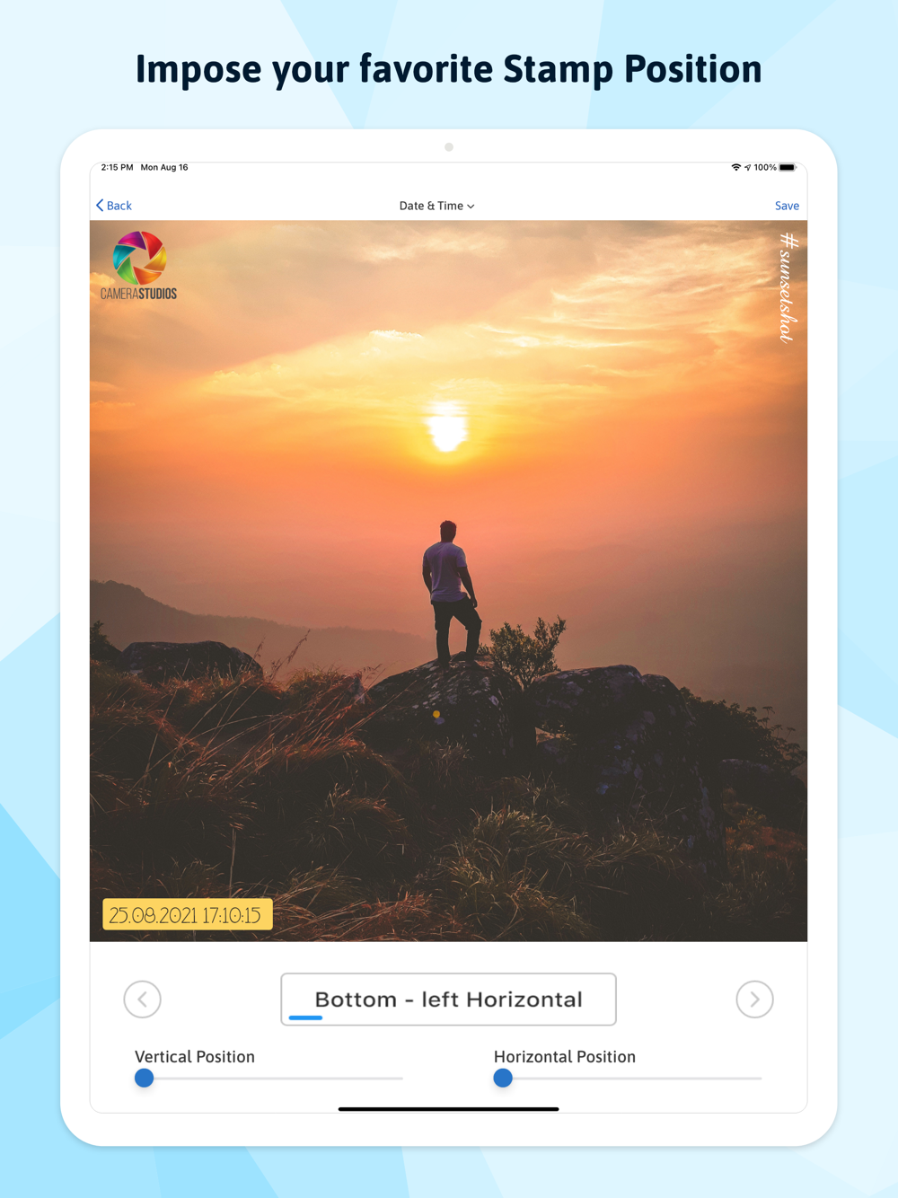 • Auto Add date timestamp - Easily add datetime stamp to the photos.