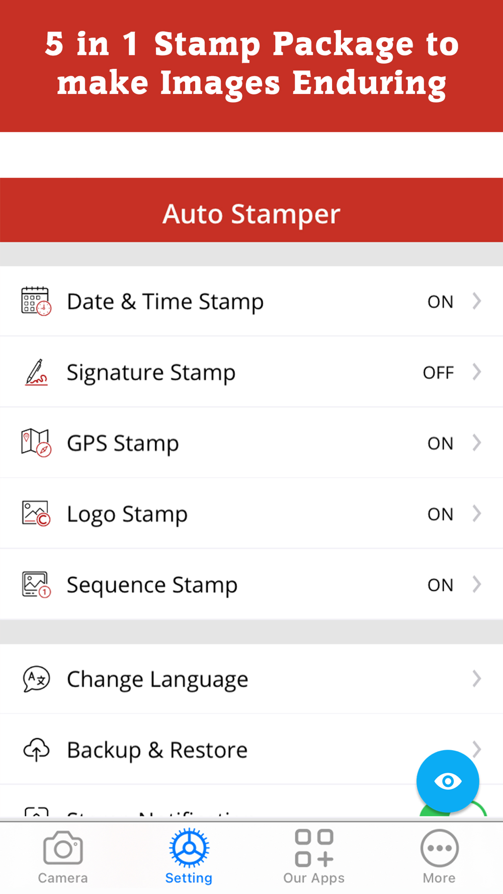 Enjoy sharing stamped Photos Freely with AutoStamper Application. You can have Datetime, Location, Sequence, Logo, Signature Stamps to get added to Your Photos clicked with Auto stamper Camera.