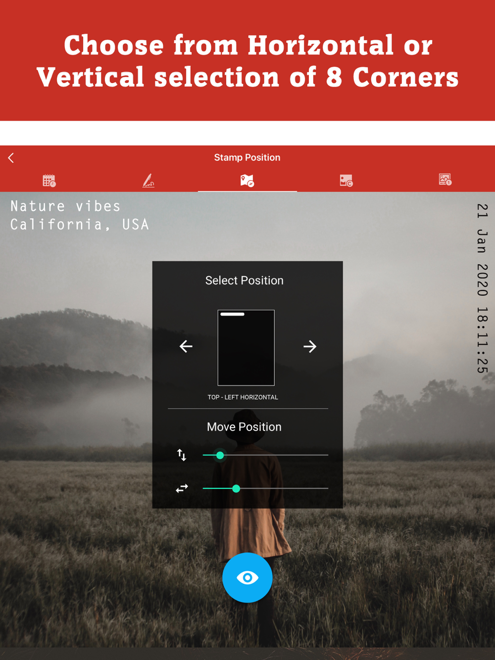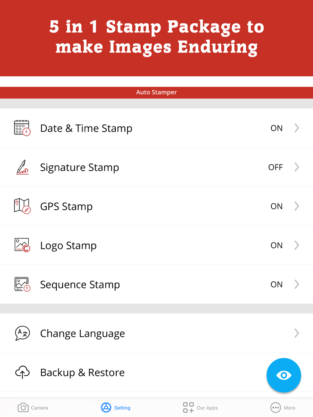 • Easy adding Photo Stamps like - GPS Map Stamp, Date Timestamp, Logo Stamp, Signature Stamp, Sequence Stamp
