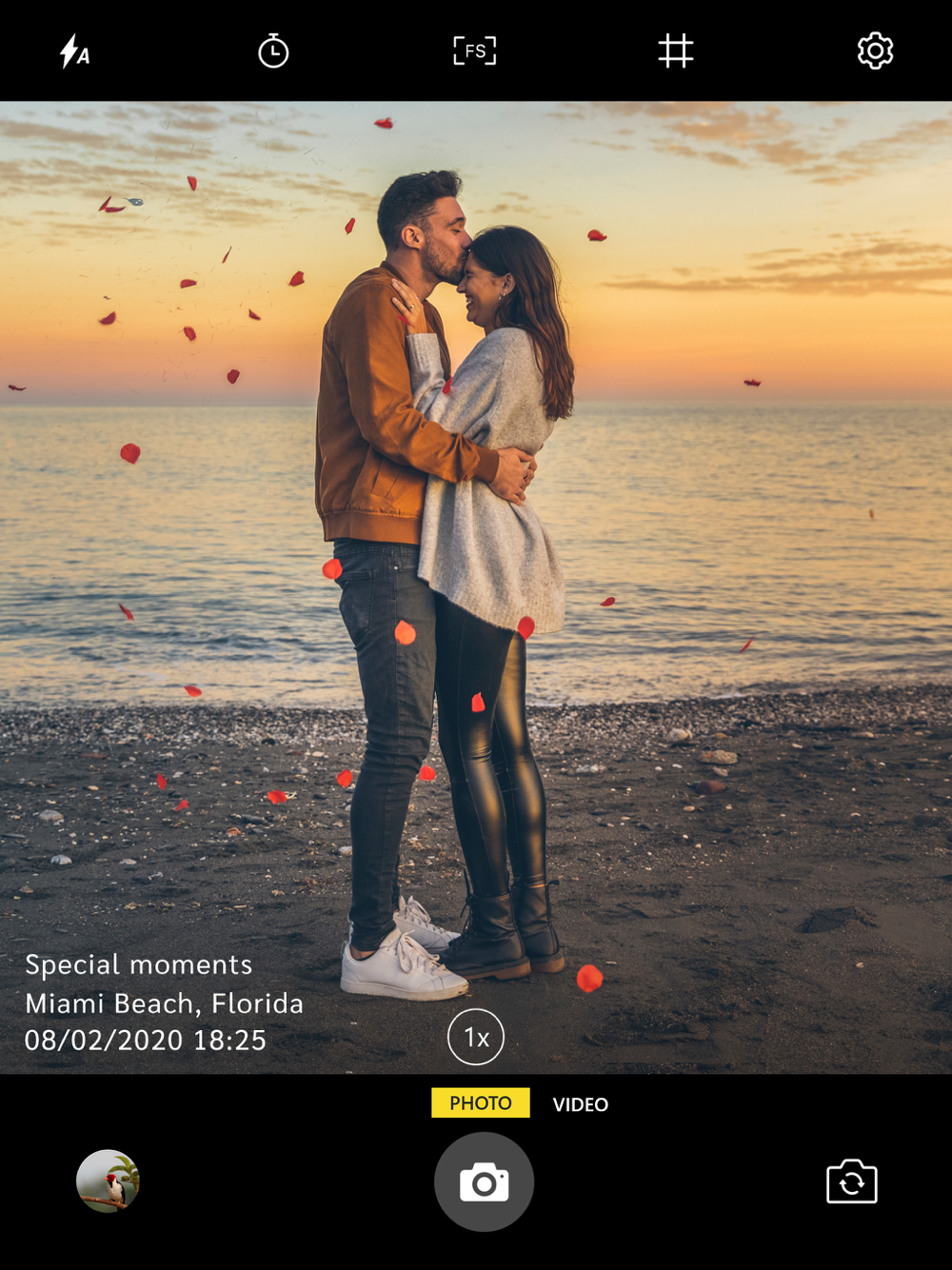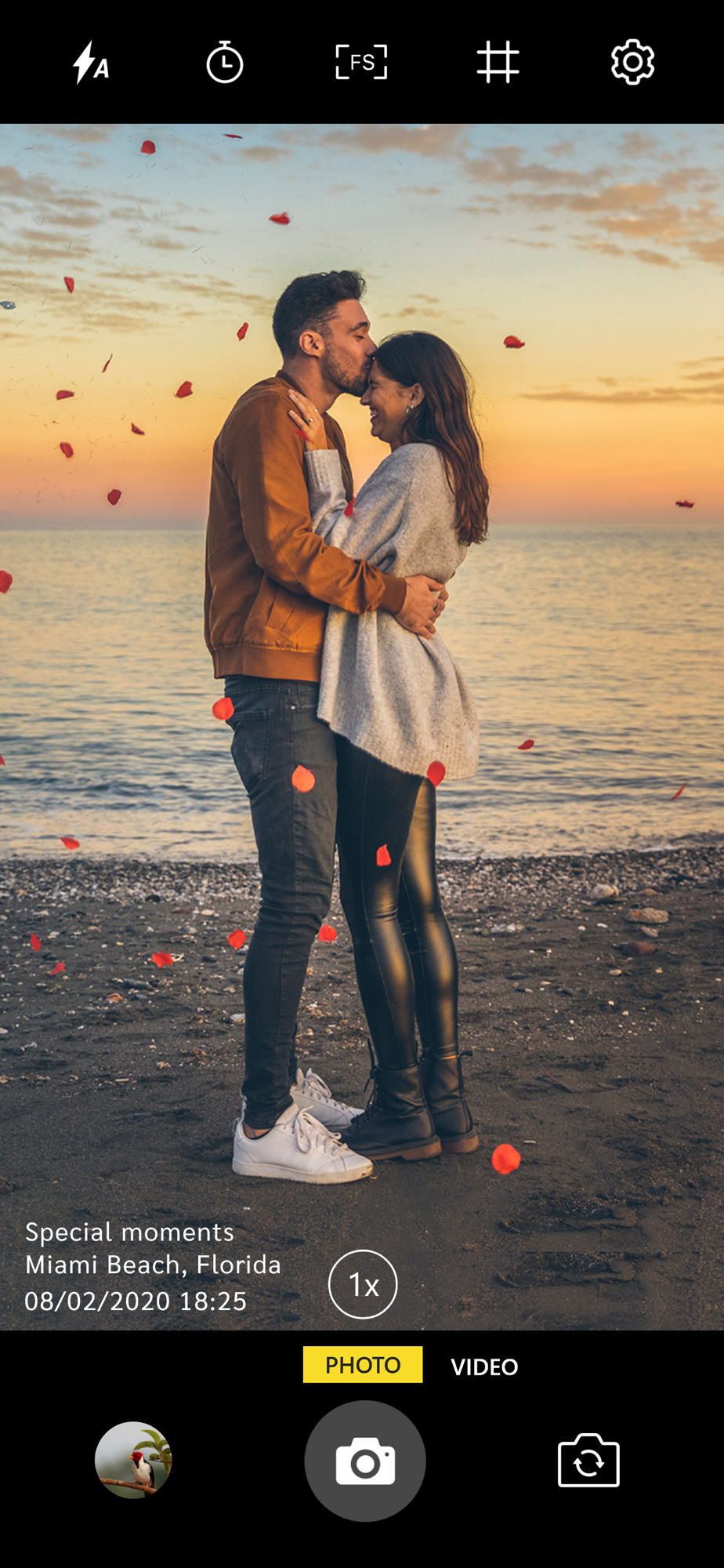 • Auto Add 5 in 1 Stamps to your clicked photos with Auto Stamper camera