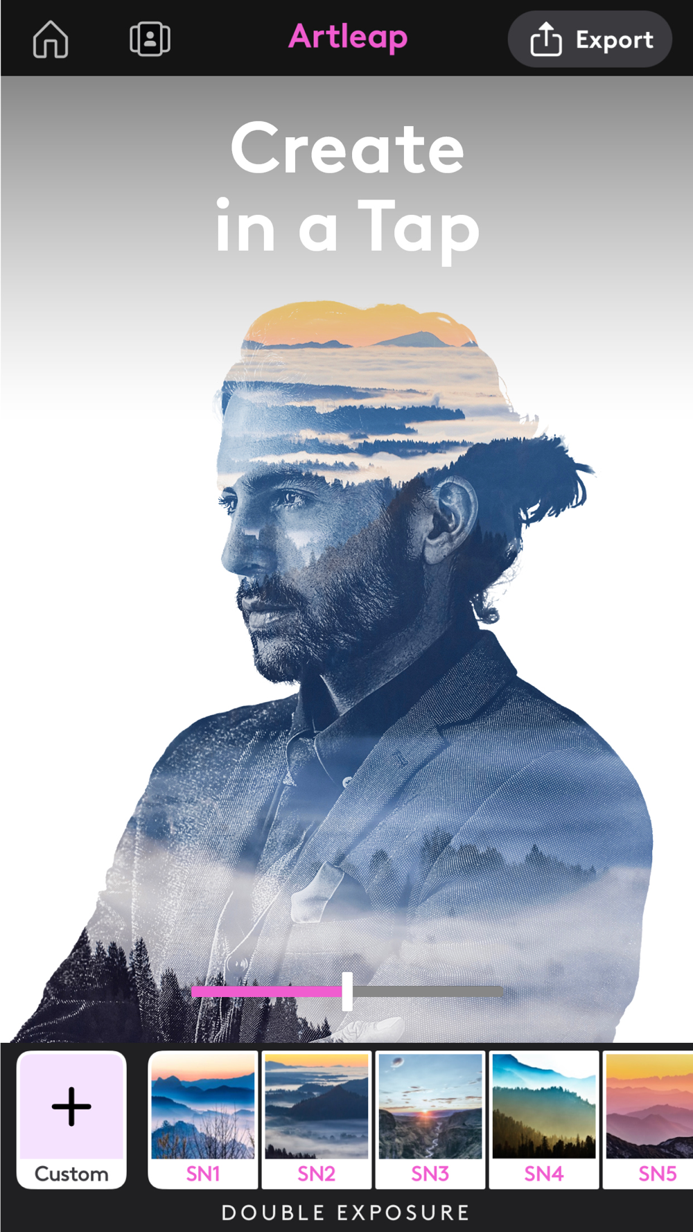 With Artleap, the art of popular effects like double exposures, dispersion, tiny planet, and many, many more will be at your fingertips, while still maintaining the ability to make each result uniquely your own.