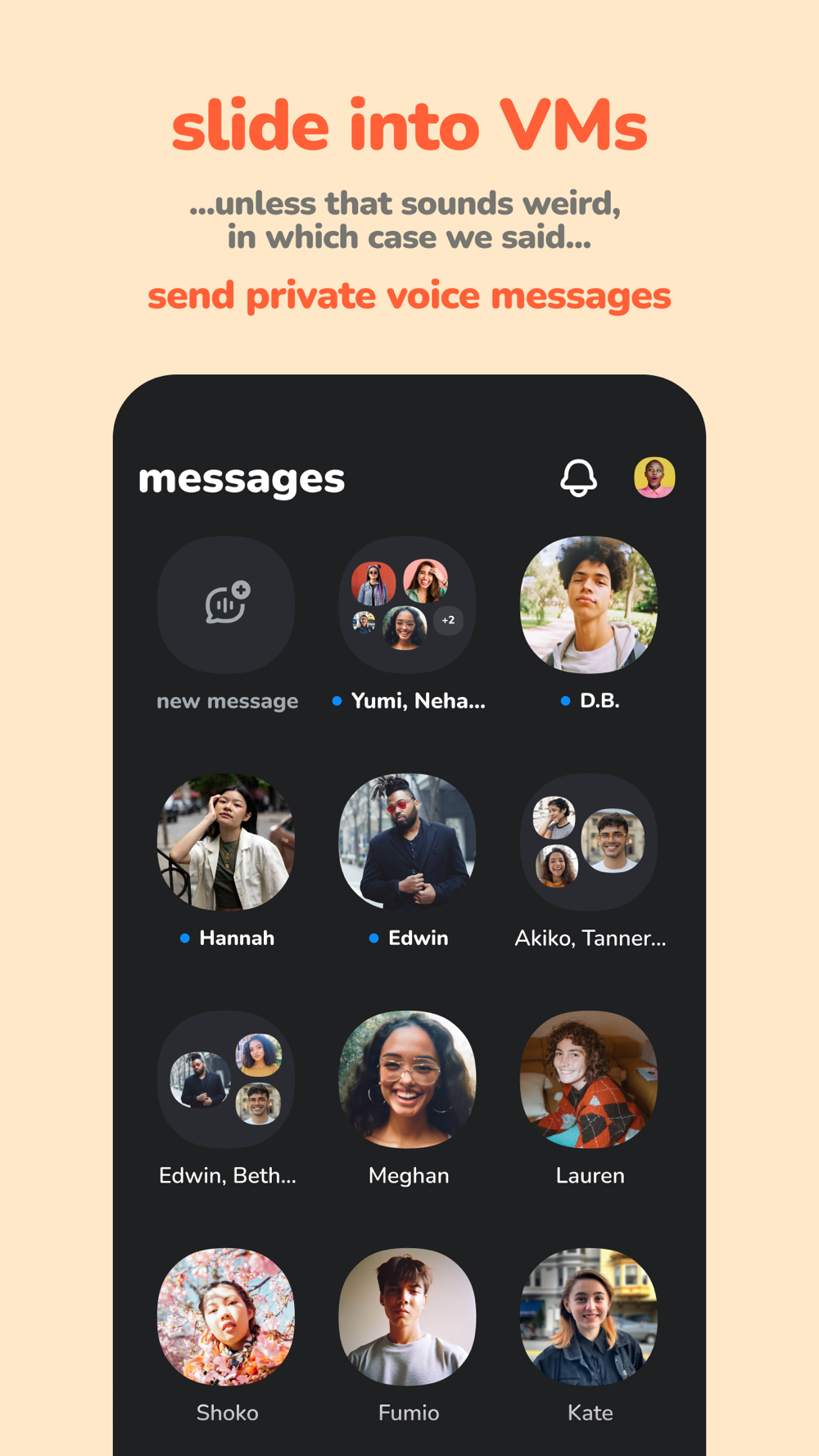 It’s just voice. No follower counts or random people. Only your friends and their friends, in a place where you can all be yourselves and hang out like you do in real life.