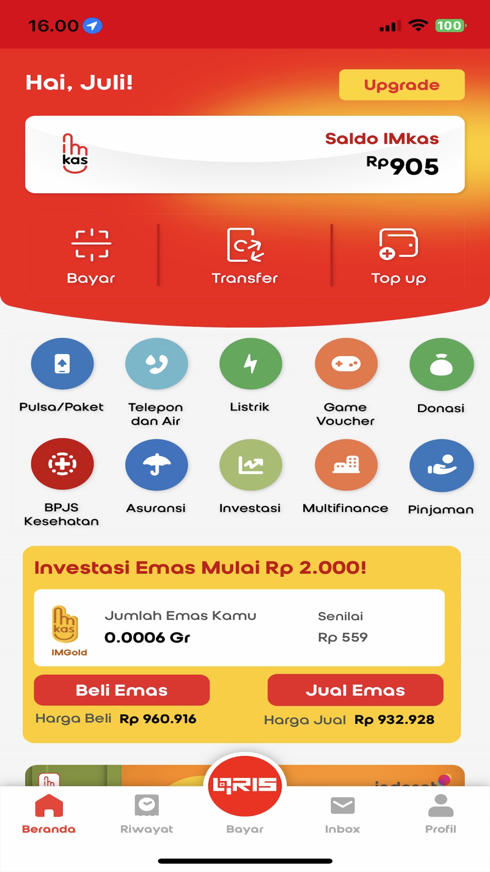 recharge, Water Bill payment (PDAM), Pay for Insurance, Investment, Pay by QR at your local convenience stores. It