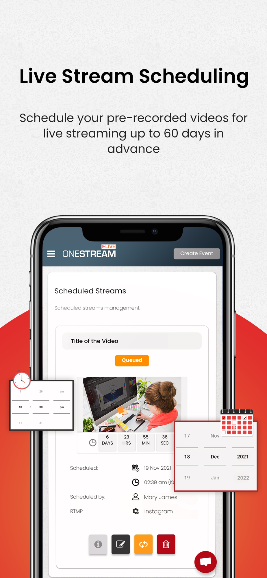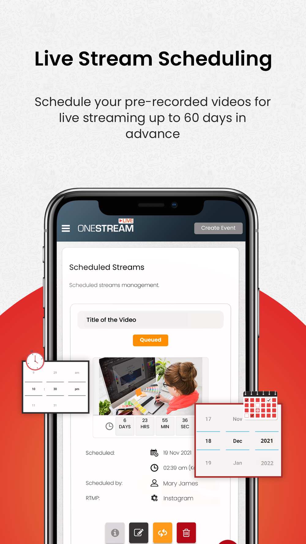 • Stream recorded videos (You can even schedule to go live at a later time)