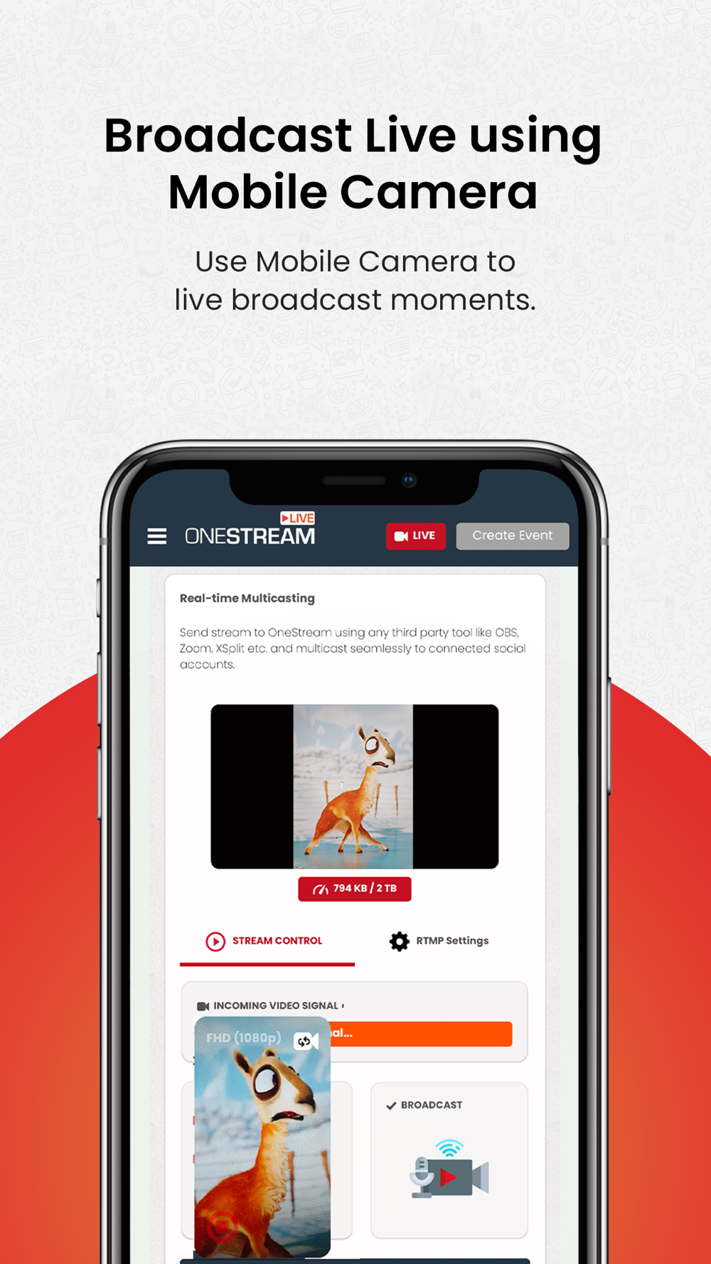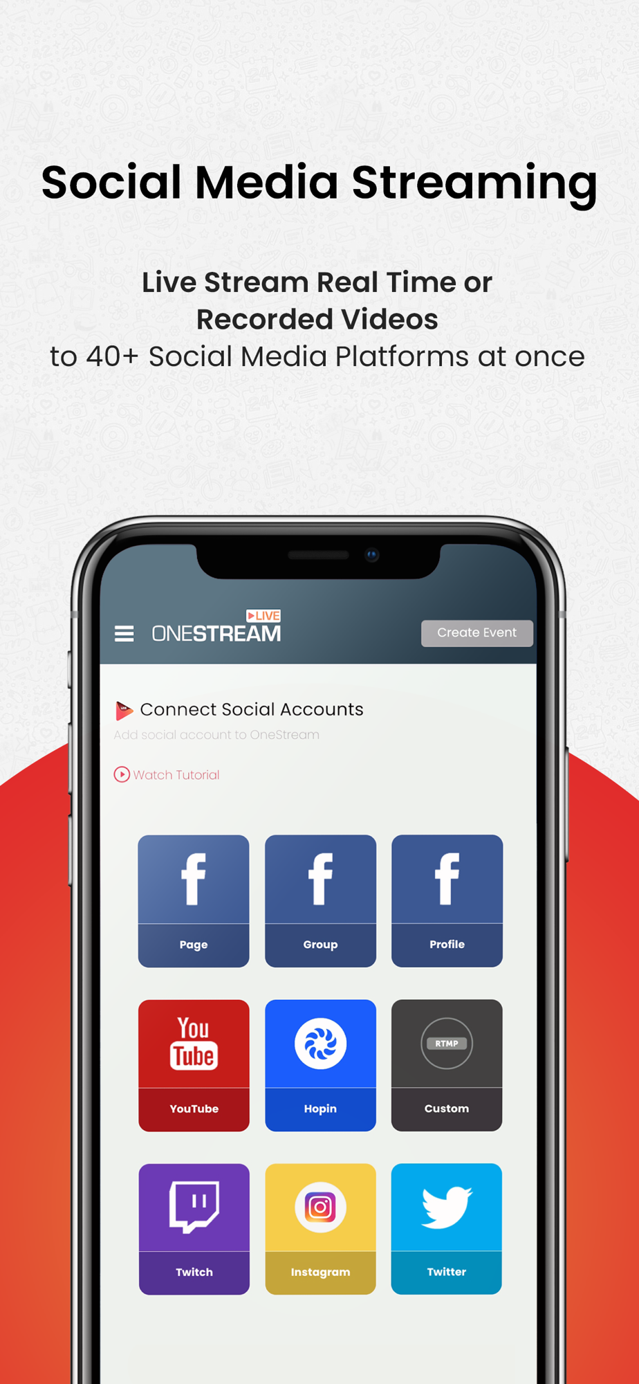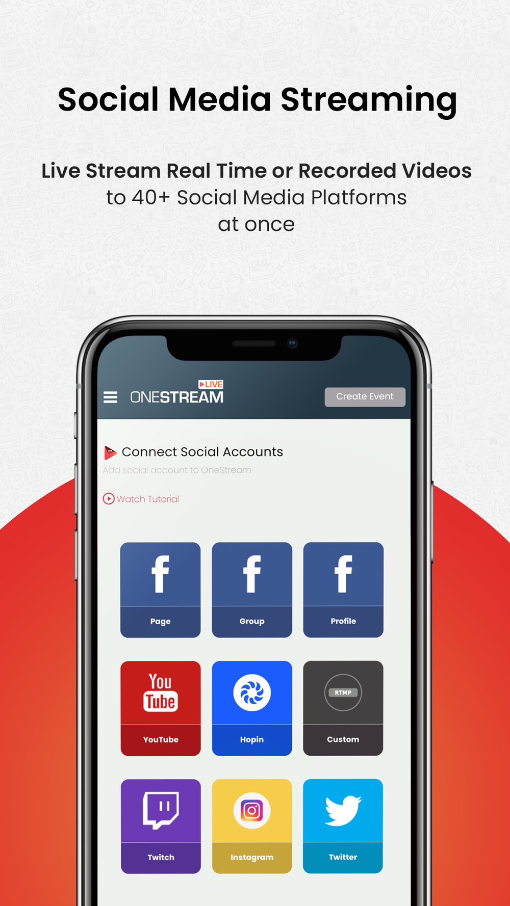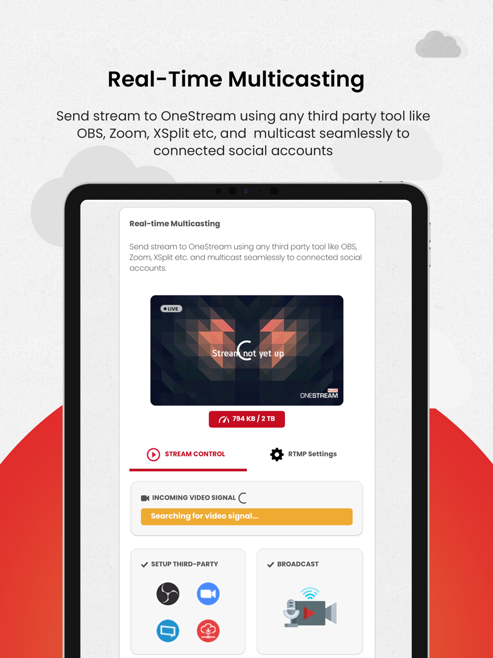 Use your mobile camera or any third-party tool to stream to OneStream and restream to multiple social media streaming destinations at the same time.