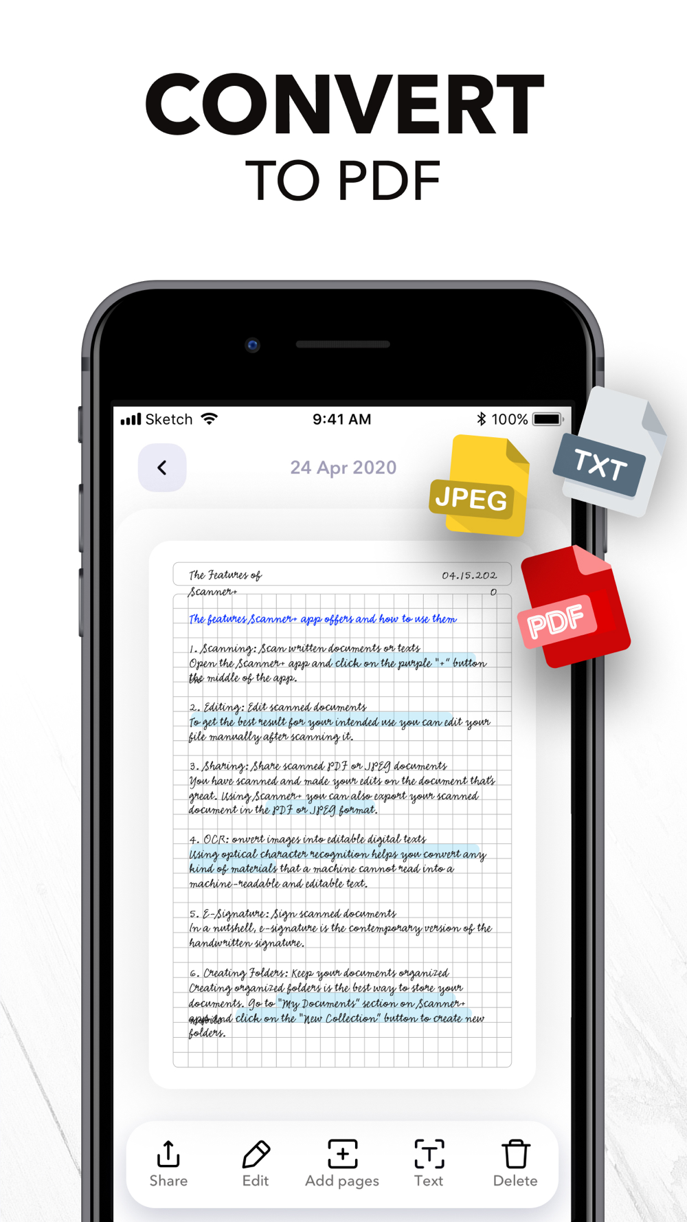 Scanner+ is also a PDF Converter that turns photos & images into searchable digital documents! This way you can also ""CTRL+F"" across your documents!