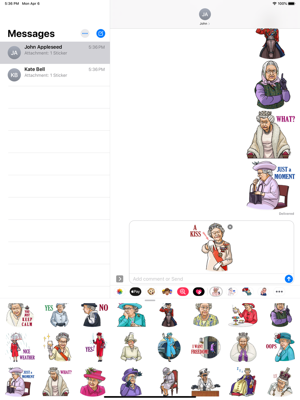 Stickers with The Queen Elizabeth will add freshness and fun to the conversation. Don't be boring. Have fun and joke and laugh.)