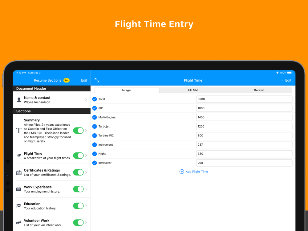 Create professional looking resumes to help you land your dream pilot or flight instructor job.