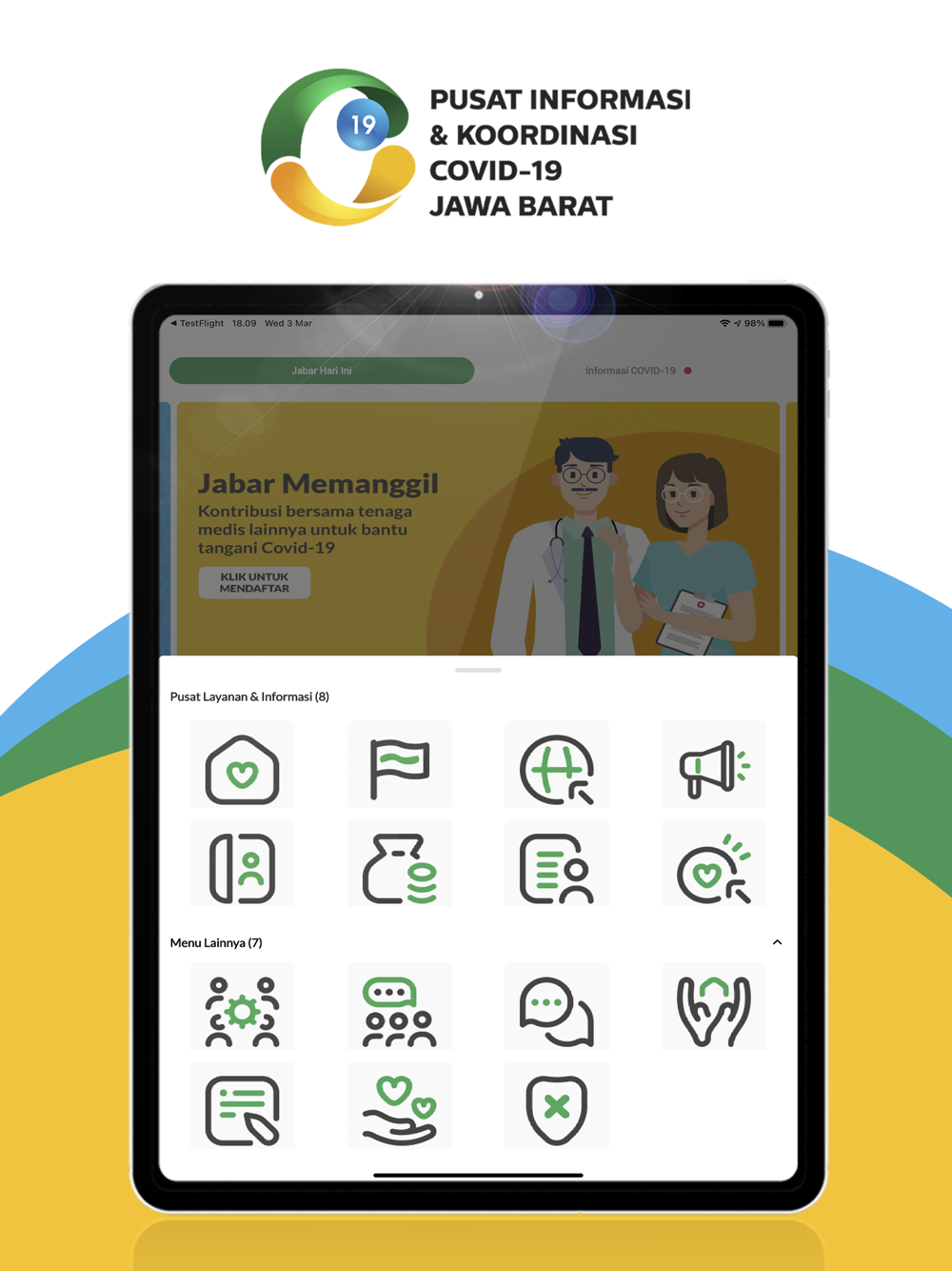 The Jabar Digital Service Team or the Digital Services, Data and Geospatial Information Technical Services Unit under the Communication and Information of the West Java Government developed these open-source app providing data and visualization that allows citizens to access the latest cases of the disease, submit requests for help, access emergency numbers, clarify misinformation, and so on.