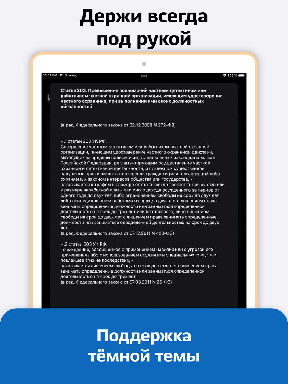 Кодекс обновлен в соответствии с законами:- Федеральный закон от 13.06.2023 N 210-ФЗ,- Федеральный закон от 13.06.2023 N 214-ФЗ;- Федеральный закон от 10.07.2023 N 323-ФЗ;- Федеральный закон от 31.07.2023 N 390-ФЗ;- Федеральный закон от 04.08.2023 N 413-ФЗ.Если вы сталкиваетесь с любой ошибкой, несоответствием или другими проблемами, пожалуйста, нажмите на кнопку "поддержка" в настройках. Либо пишите напрямую на почту: [email protected]