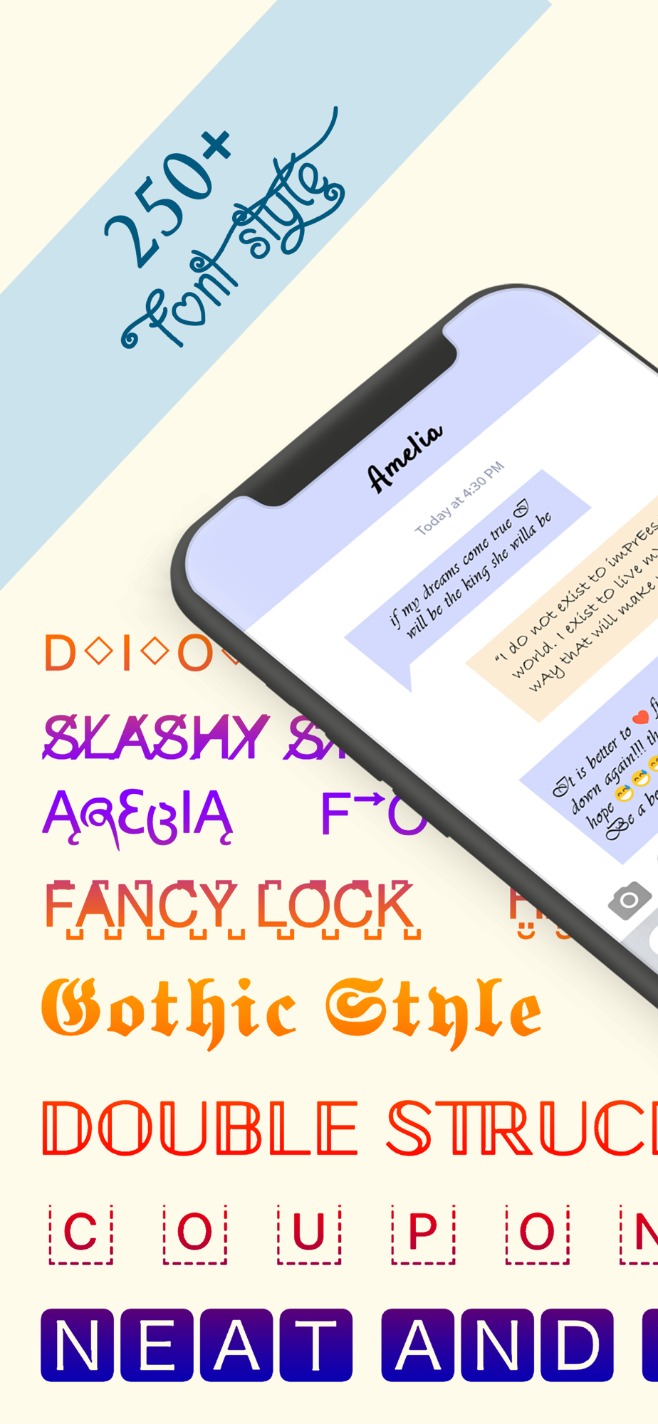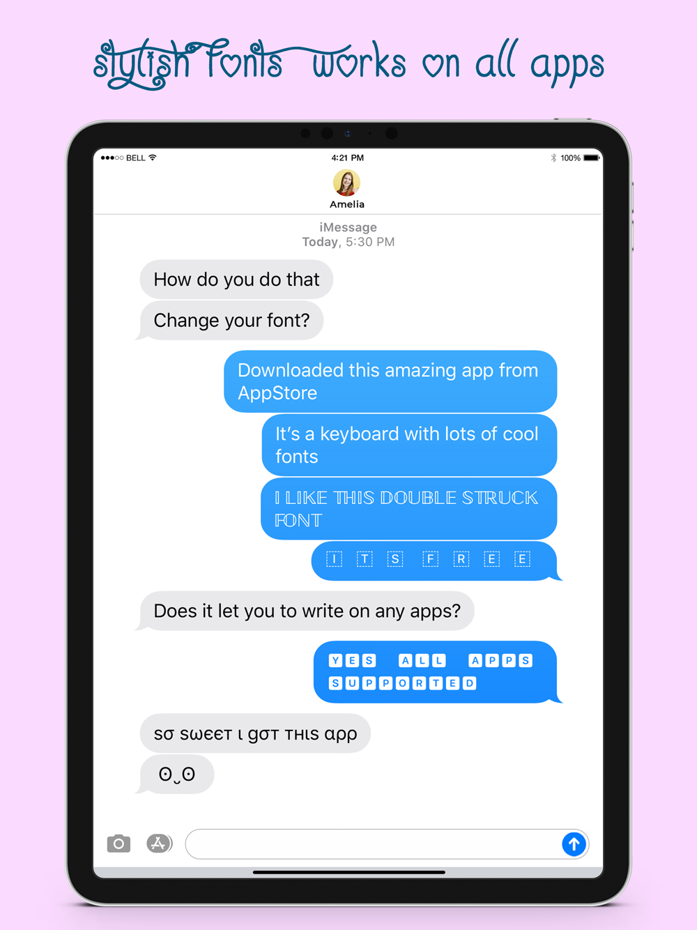 Customize your device with tons of different fonts that can be used everywhere you can type a message (Email, iMessage, Whatsapp, Line, Snapchat, WeChat, Kik, TikTok ...)