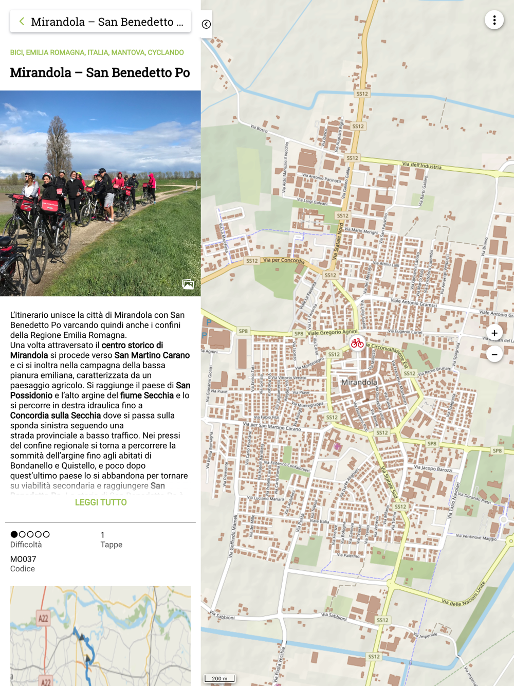 • scegli la destinazione che vuoi visitare e la app fa il resto, fornendoti tutte le informazioni sul calcolo del percorso in bici, sull’itinerario, sulle tappe, sul grado di difficoltà, sulla tipologia, la lunghezza del percorso e sui punti di interesse;