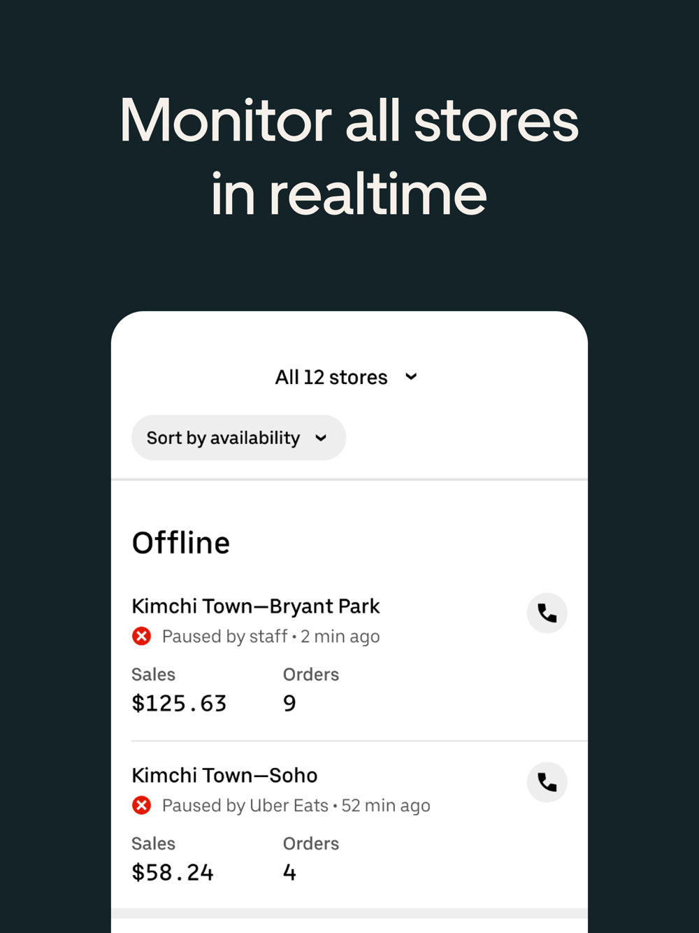 Run your restaurants or stores from the palm of your hand. Uber Eats Manager empowers you to operate your business anywhere you have a signal or internet connection.
