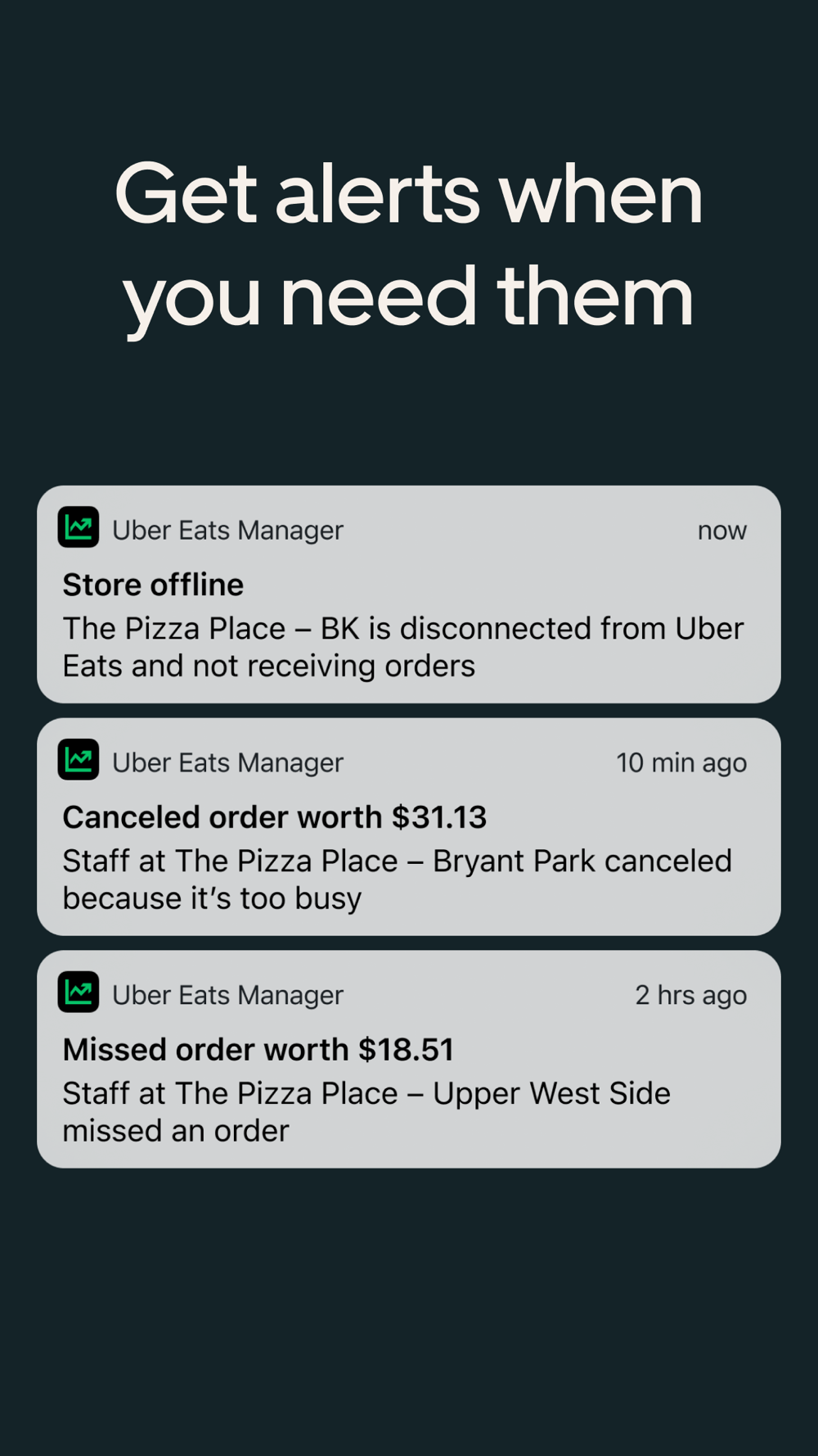 Uber Eats Manager is a trusted business partner in your pocket. Access live data for all your retail locations and act quickly to resolve issues and respond to customers. It’s the innovation you need to reach new customers and keep them coming back.