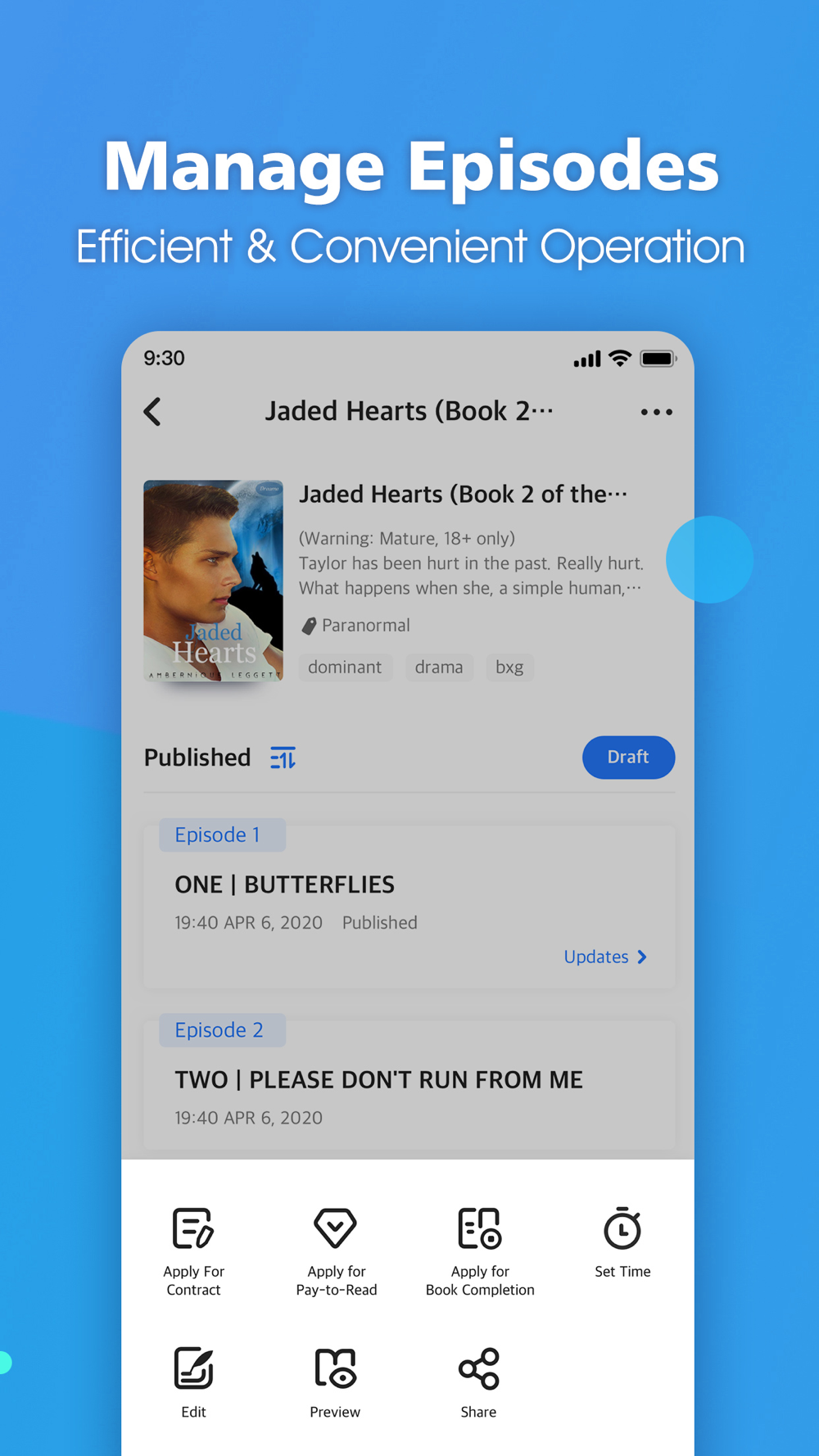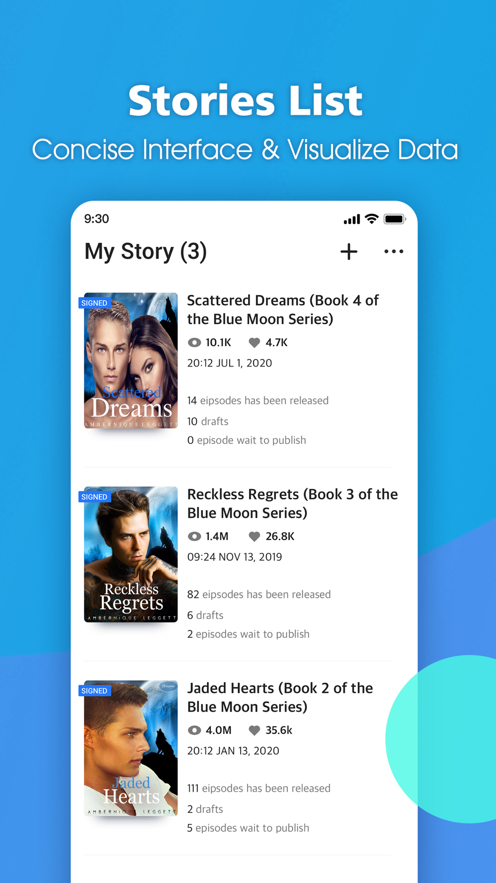 1.Minimal UI designed for writer to easily edit, organize, storage and publish stories