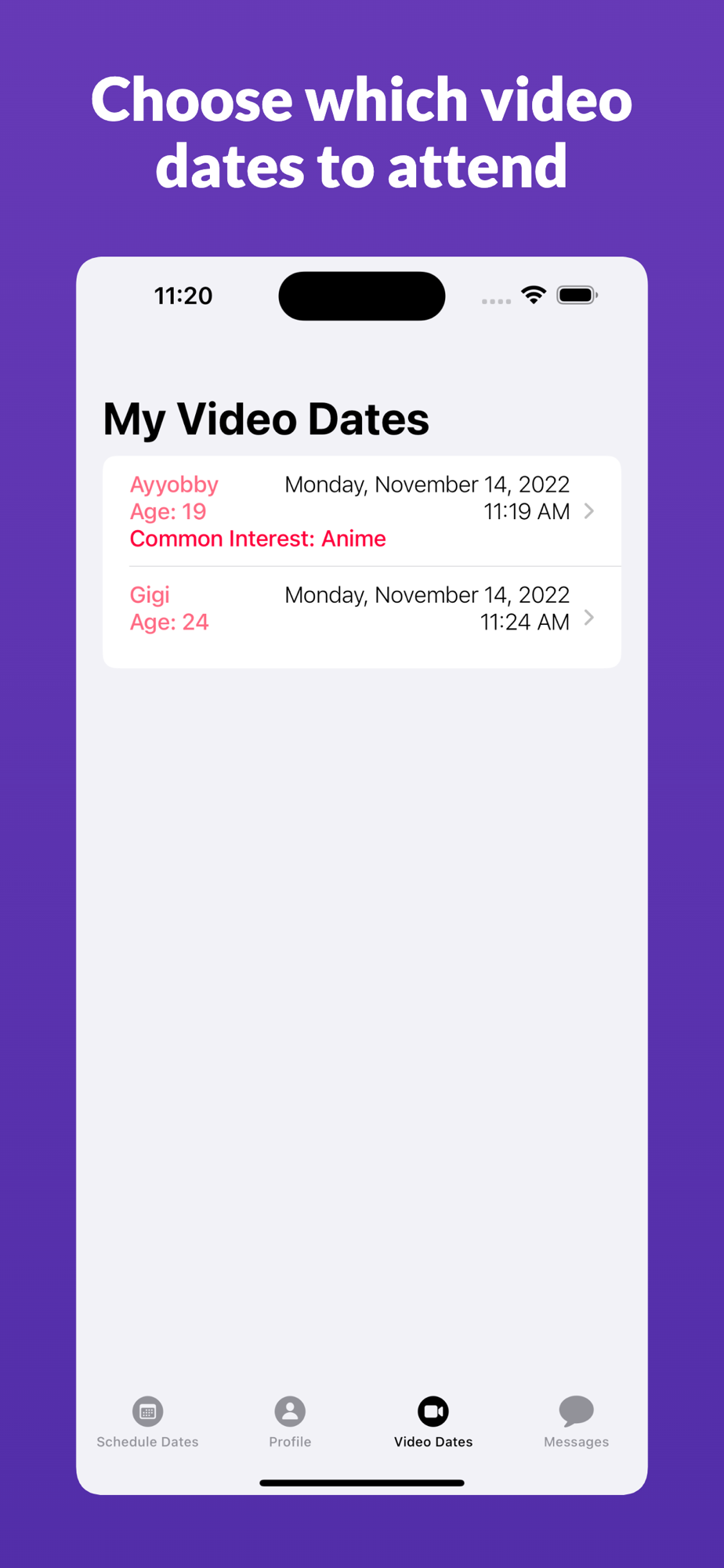 3. When Cuff sets you up on video chats, show up, and talk to your match for two minutes.