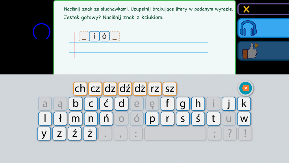 - Pisanie ze słuchu. Przy błędnym napisaniu wyrazu, pojawi się poprawna odpowiedź.