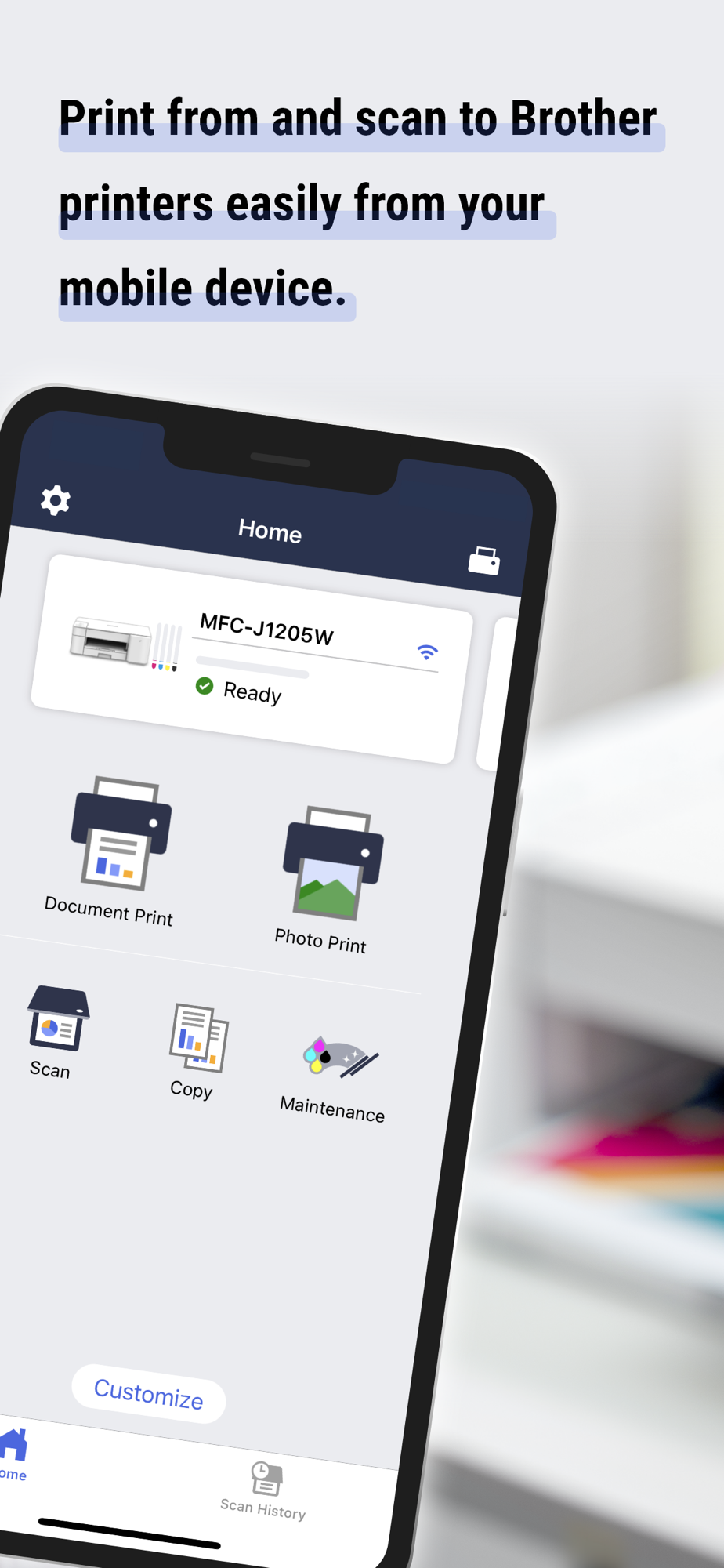 Use Brother Mobile Connect to print, scan, and copy, as well as manage your machine and customize its features.