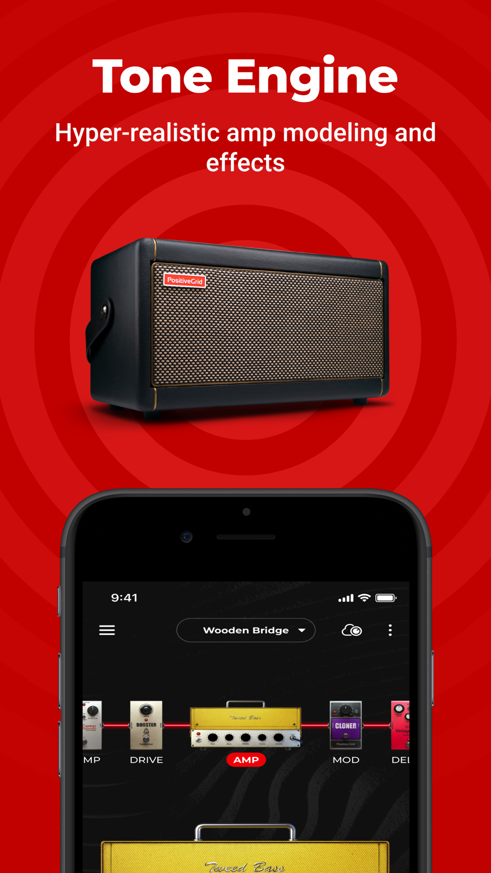 无论演奏的是清澈质朴的旋律、轻度过载的和弦,还是猛烈刺激的主奏,Spark 都能凭借完全的音箱建模和多种效果引擎满足你的需求。Positive Grid 技术领先的 BIAS 引擎带给你的是地球上最真实的虚拟电子管音箱和效果器。