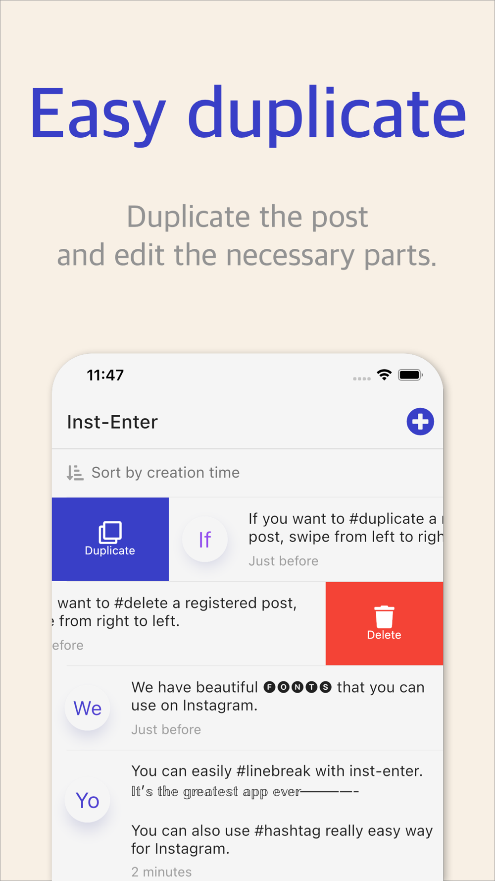 Decorate your posts using your own popping fonts and emoticons, and easily manage hashtags.