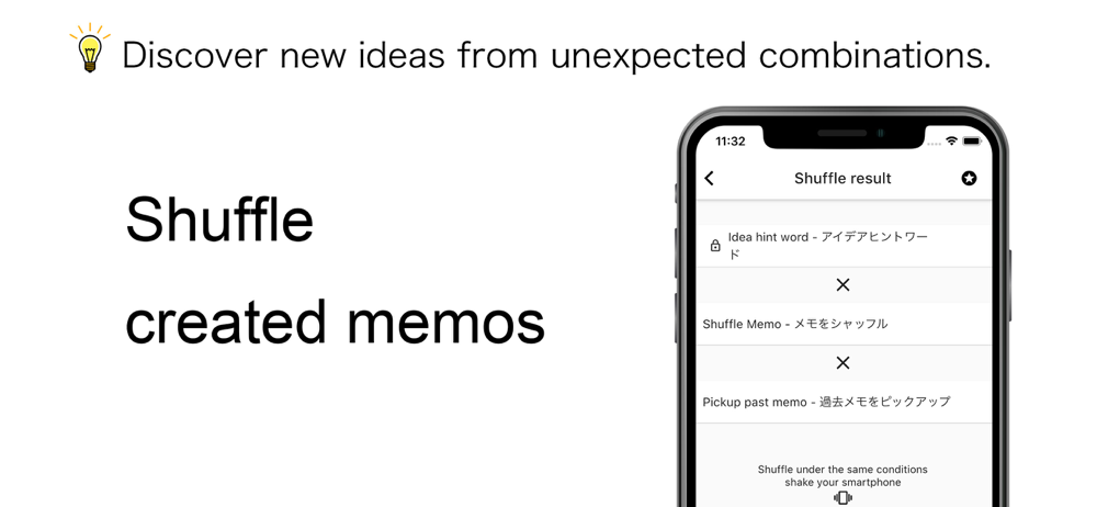 IdeaMemo iX displays two or three randomly selected memos from the created memos. You can discover new ideas from unexpected combinations.