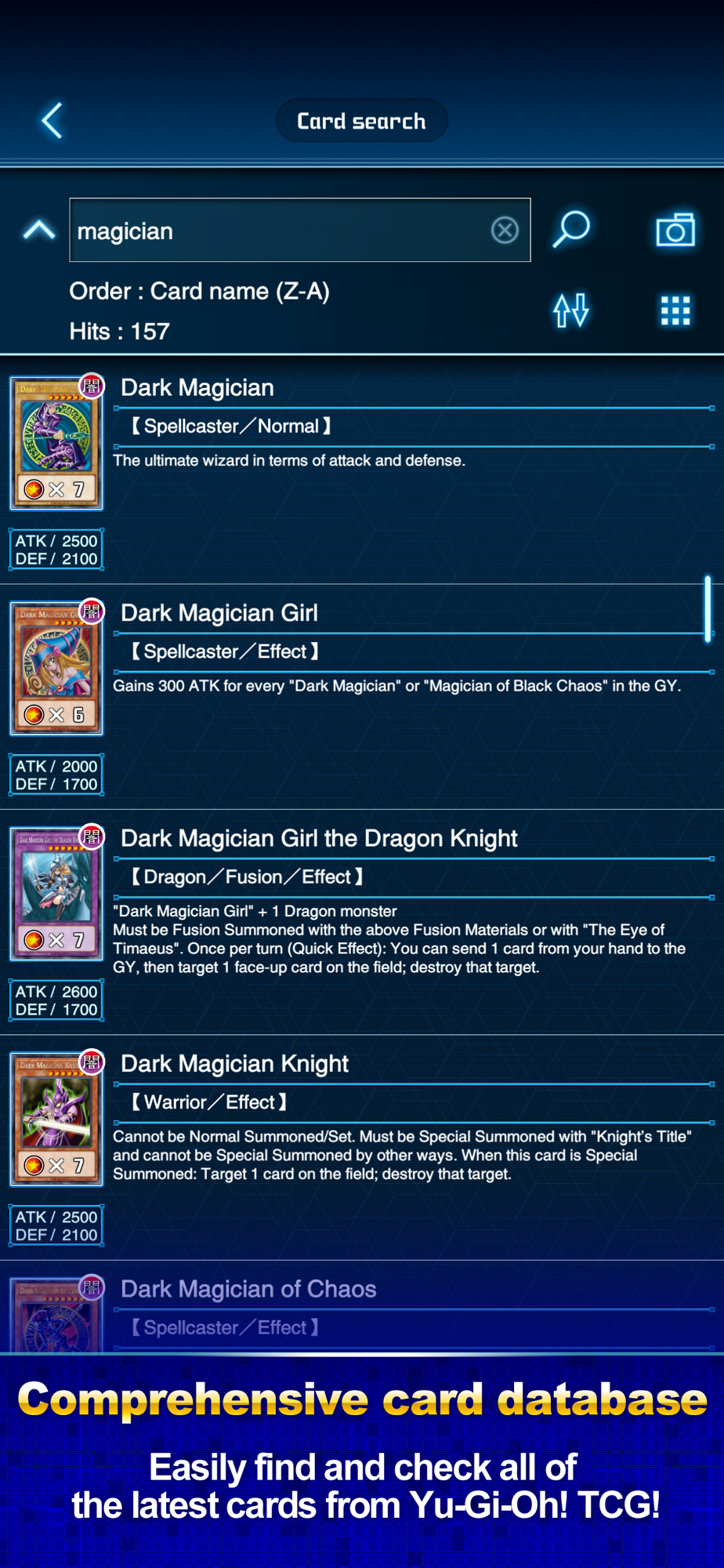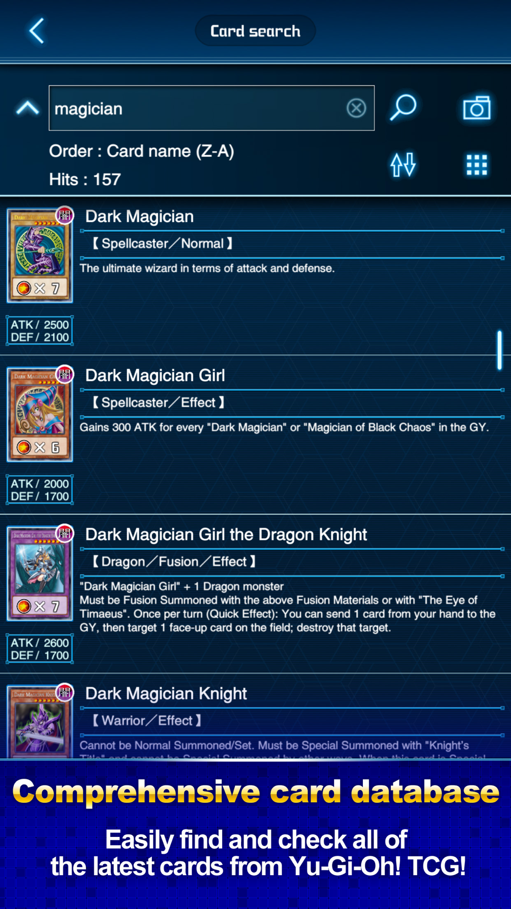- Manage your Decks by linking it to the Yu-Gi-Oh! TCG Card Database