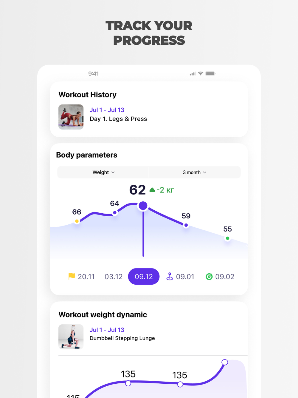 • Create a personal training plan using the large library of exercises for different muscle groups.