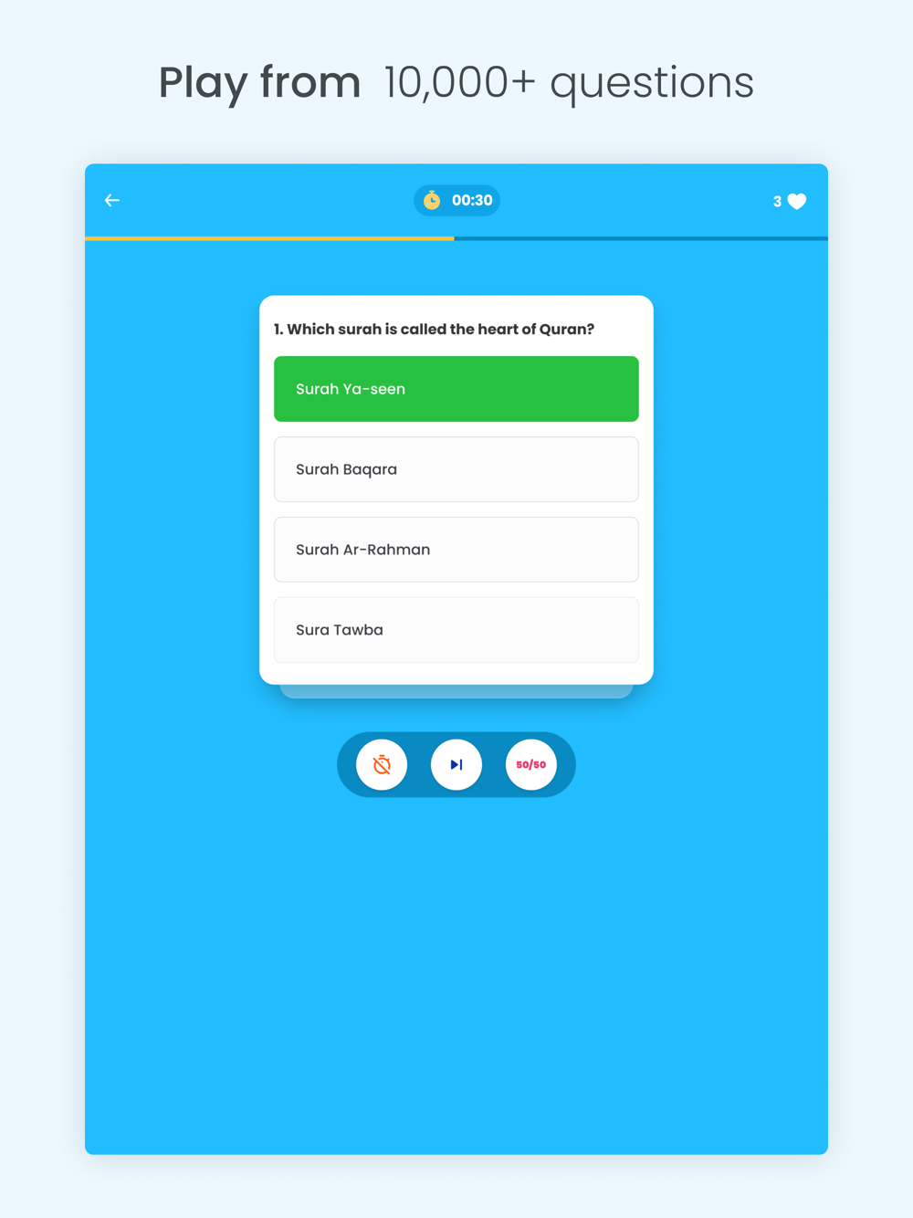 Alhamdulillah! Deen Quiz (Islamic Quiz) is a simple everyday app that will help you to get rid of boredom and gain some Islamic knowledge while playing, in sha Allah!