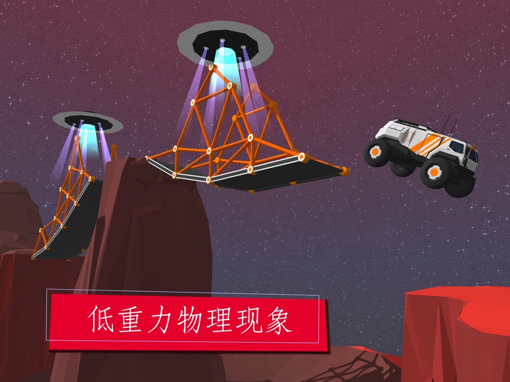 在规划阶段,游戏呈现简单的2D界面。您要在这里选择最佳的建桥材料,并构造出最具弹性结构。每一关都是复杂的谜题,以最有效和最好的方法去解决。也不要不敢尝试。您可以大开脑洞,构造出离谱但奏效的桥梁。不管哪种方法都将趣味无穷。